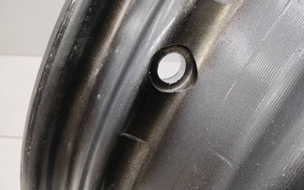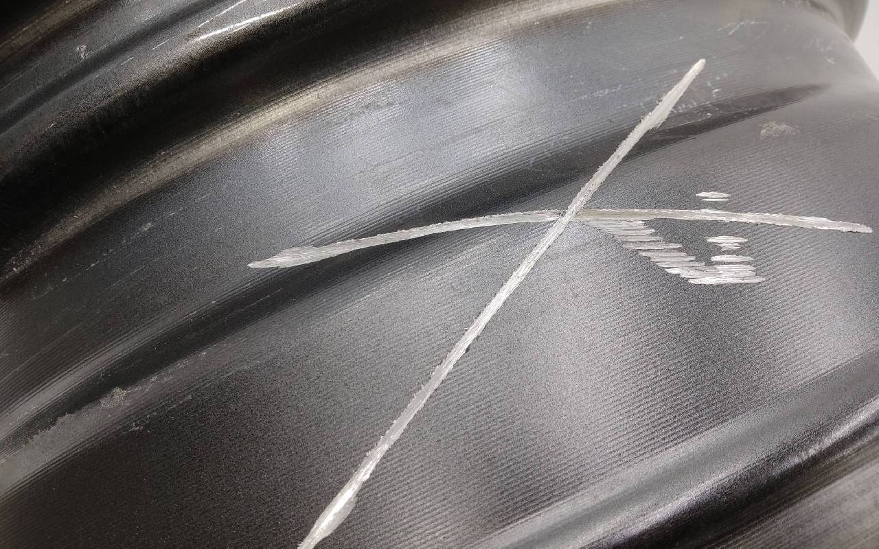 Состояние детали удовлетворительное. Серого цвета, дефект ЛКП. Надпилы по борту и на лицевой поверхности. Потребуется ремонт