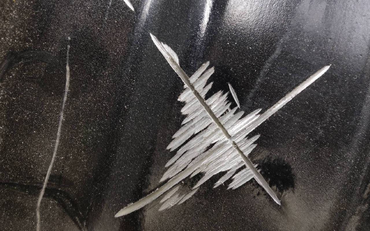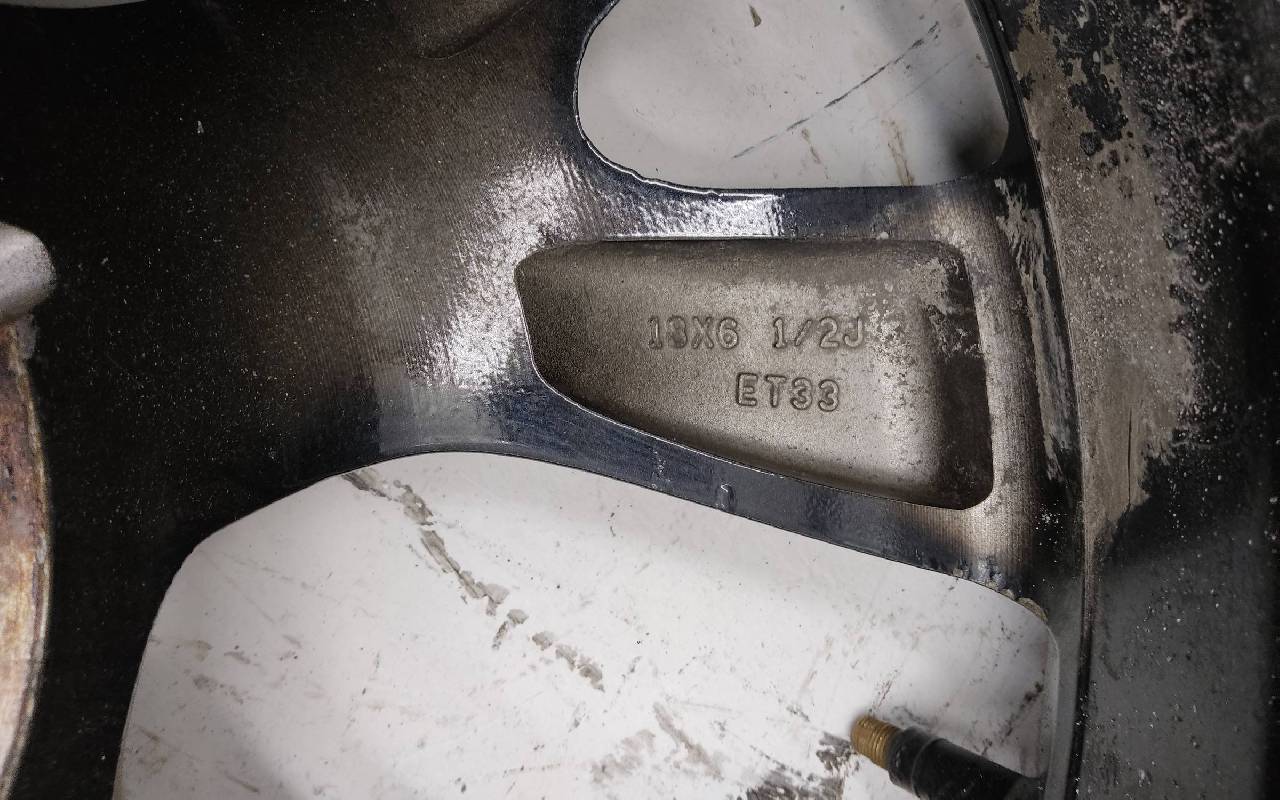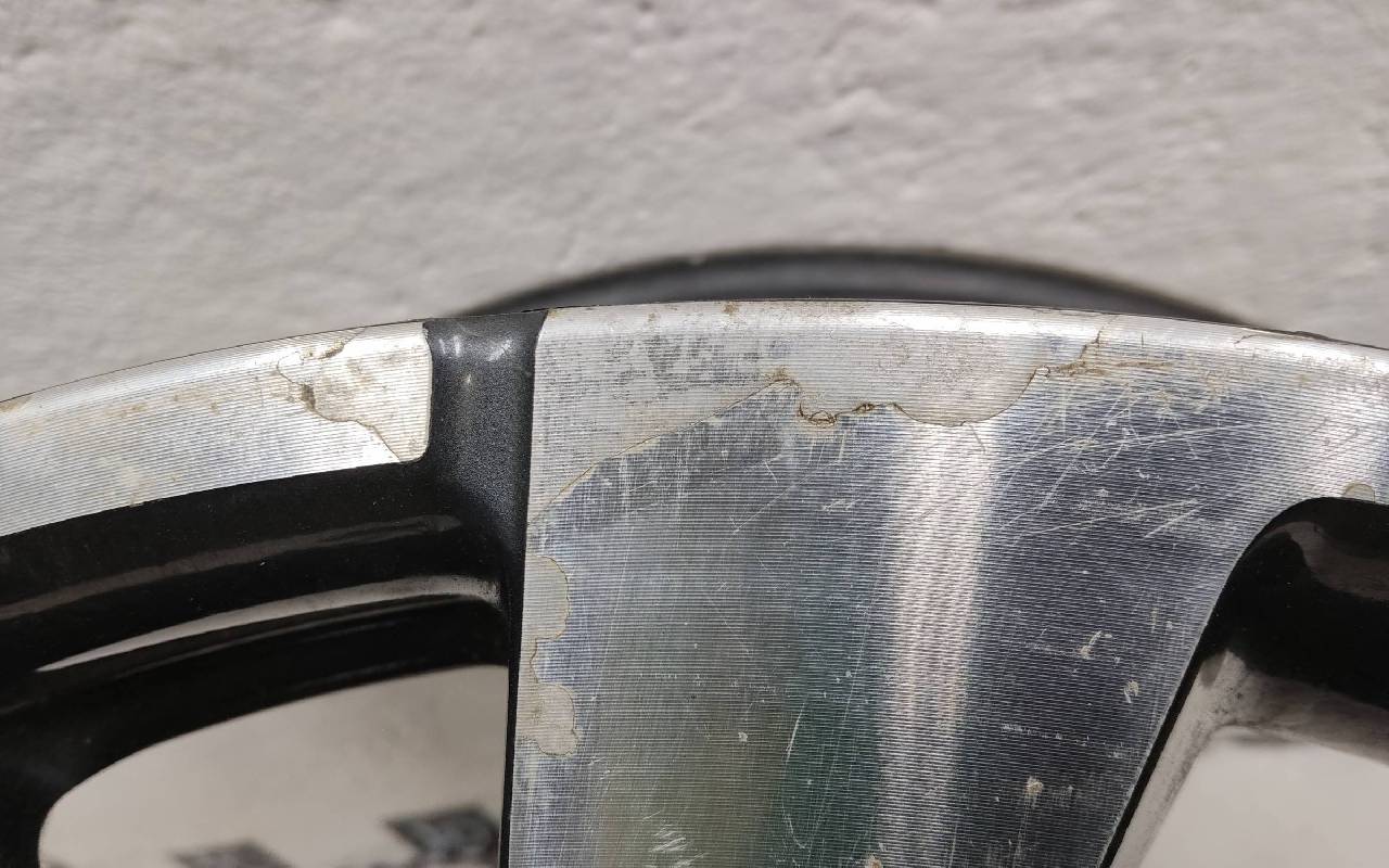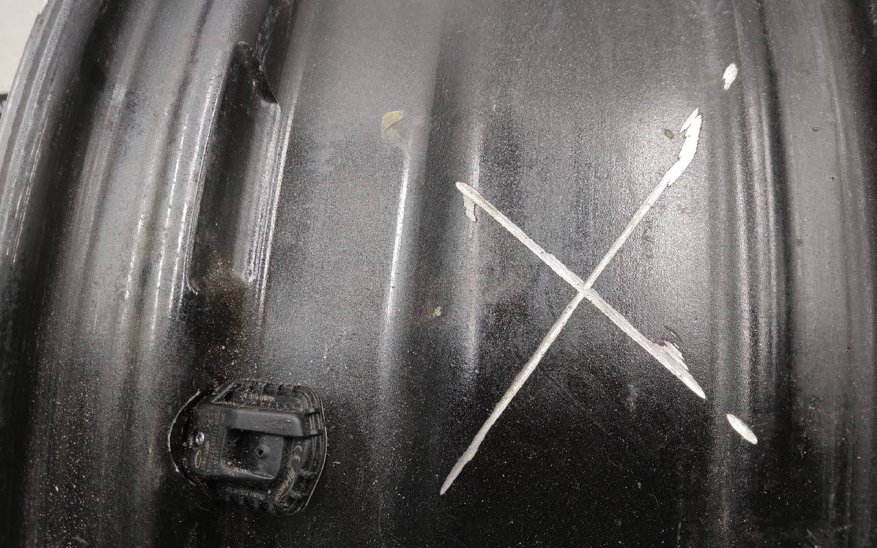 Состояние детали хорошее. Серого цвета, датчик TPMS с дефектом. Скол ЛКП. Небольшие царапины - надпилы по борту. Потребуется незначительный ремонт