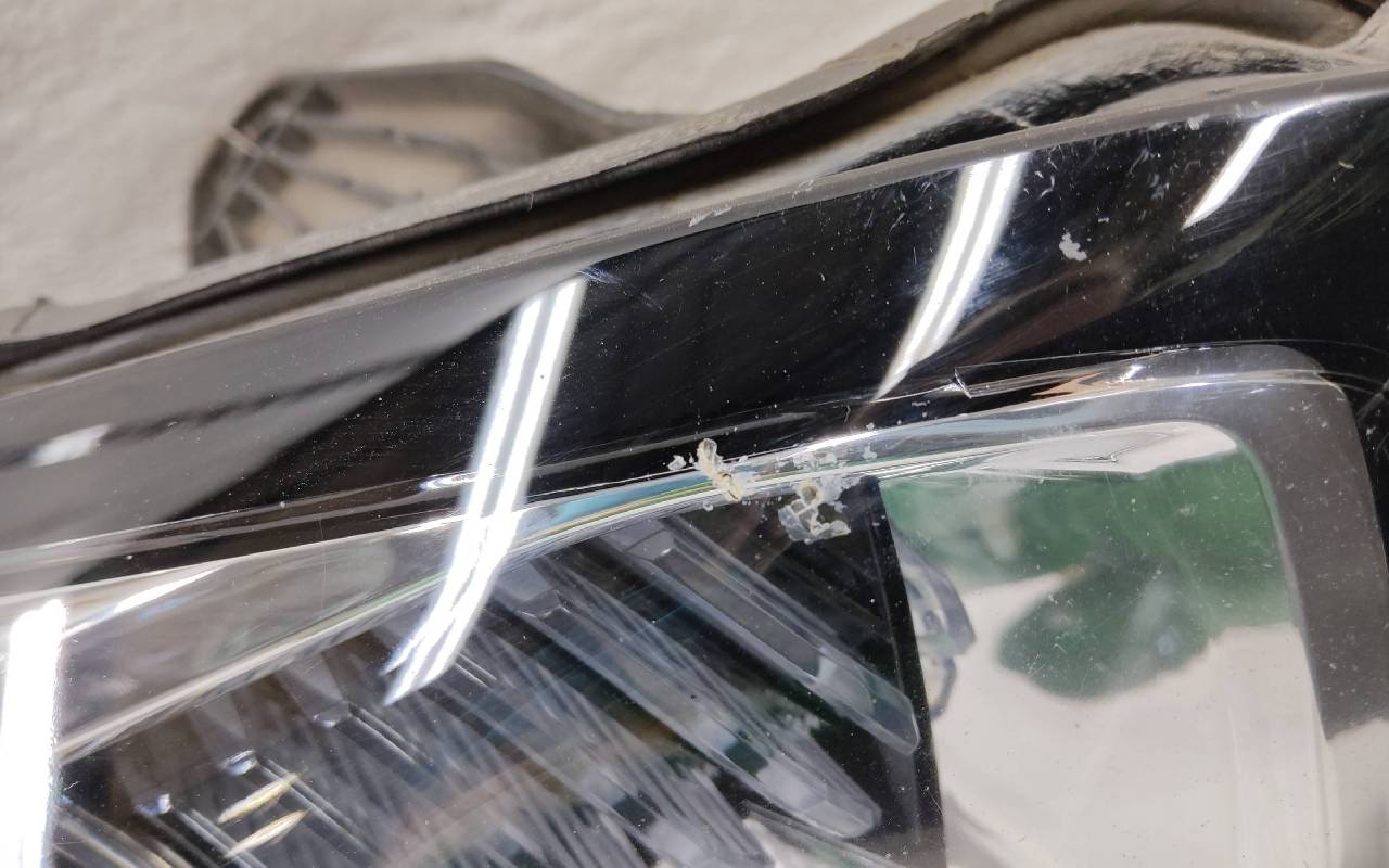 Состояние детали хорошее. Небольшая потёртость стекла. Крепления целые. Под полировку