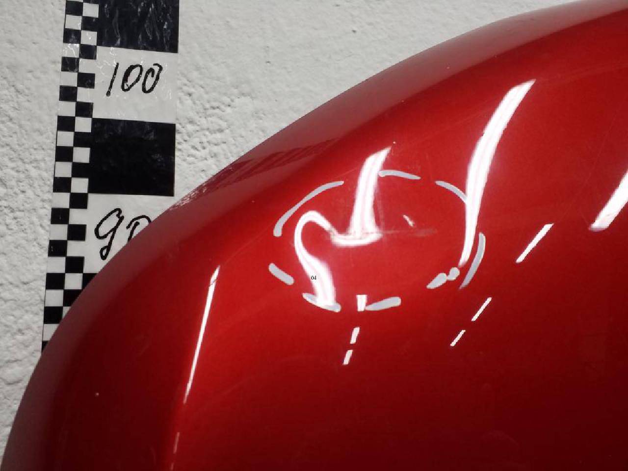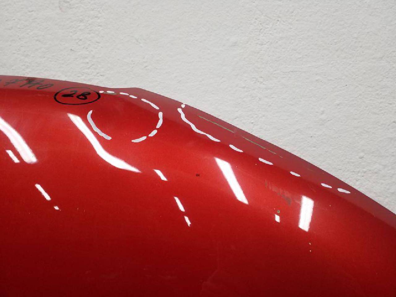 Состояние детали удовлетворительное. Красного цвета,потертость поверхности,под покраску. Дефект металла вмятинки на фото. Под ремонт