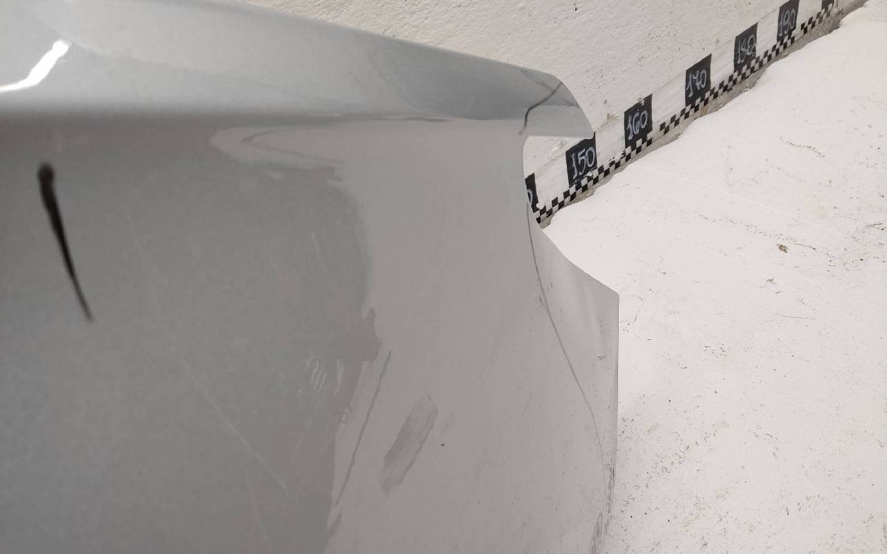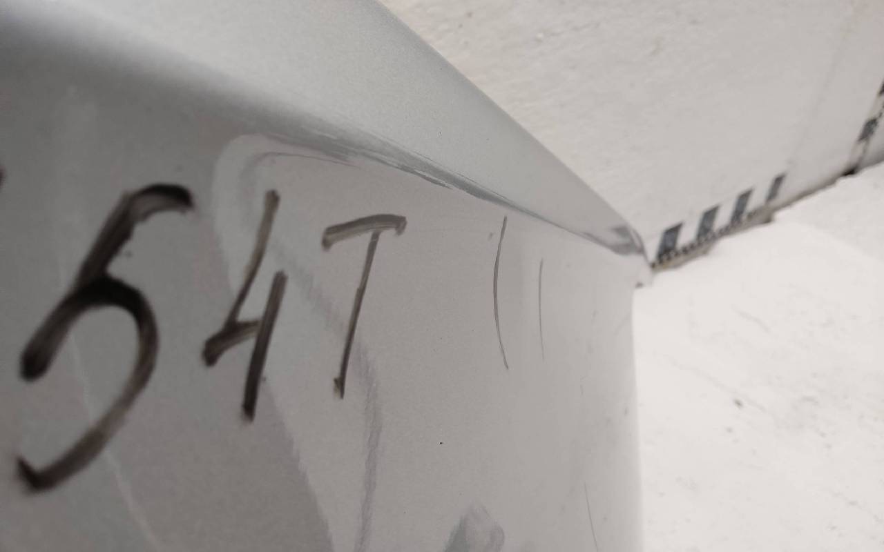 Состояние детали удовлетворительное. Серебристого цвета, скол ЛКП. Небольшие вмятины. Потребуется ремонт