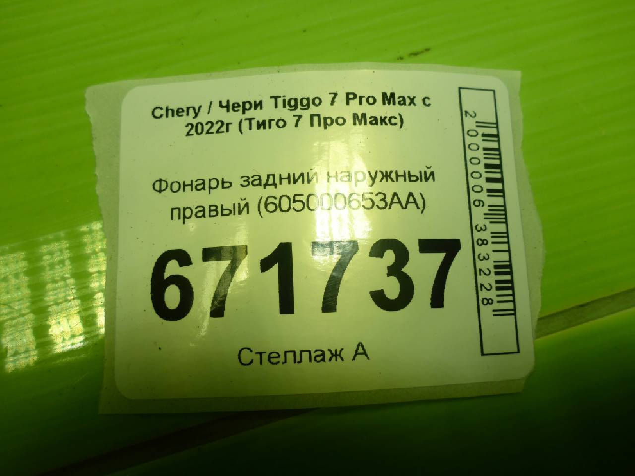 Деталь: Chery Tiggo 7 Pro Max - Фонарь задний наружный правый (605000653AA)