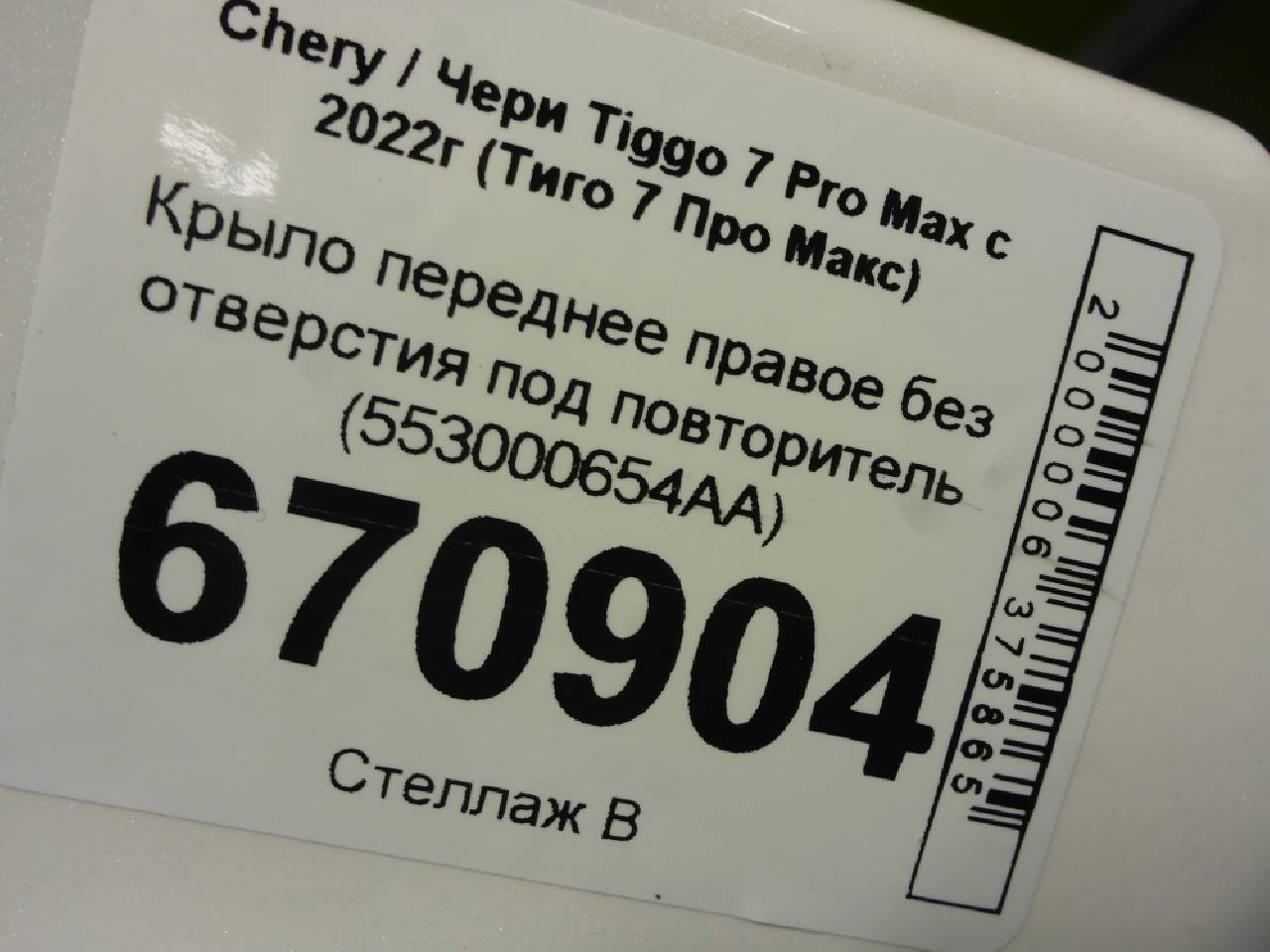 Деталь: Chery Tiggo 7 Pro Max - Крыло переднее правое без отверстия под повторитель (553000654AA)