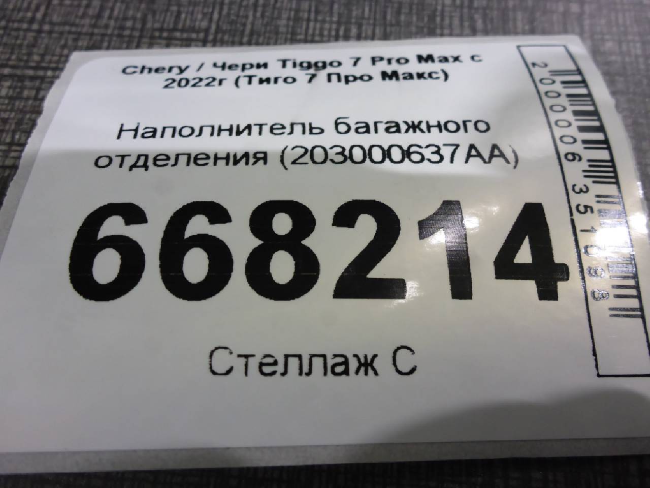 Деталь: Chery Tiggo 7 Pro Max - Наполнитель багажного отделения (203000637AA)