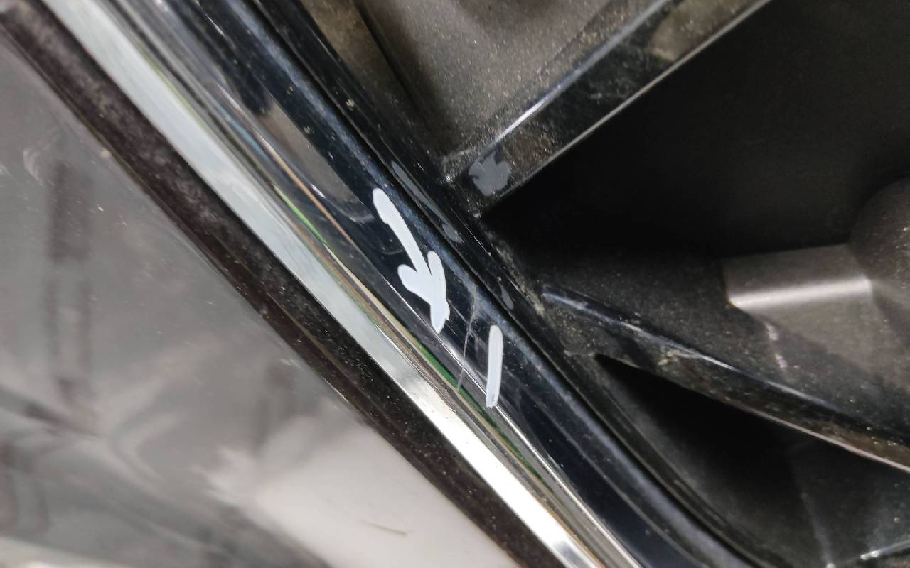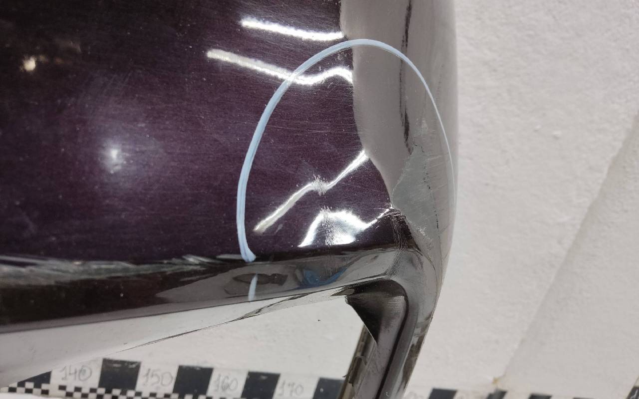 Состояние детали хорошее. Фиолетового цвета. Вмятина. После небольшого ремонта. Царапины . Дефект хрома на фото. Крепления целые. Потребуется незначительный дополнительный ремонт