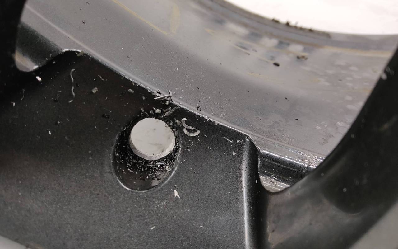 Состояние детали удовлетворительное. Тёмно-серого цвета, дефект ЛКП. Надпилы по борту и на лицевой поверхности. Потребуется ремонт