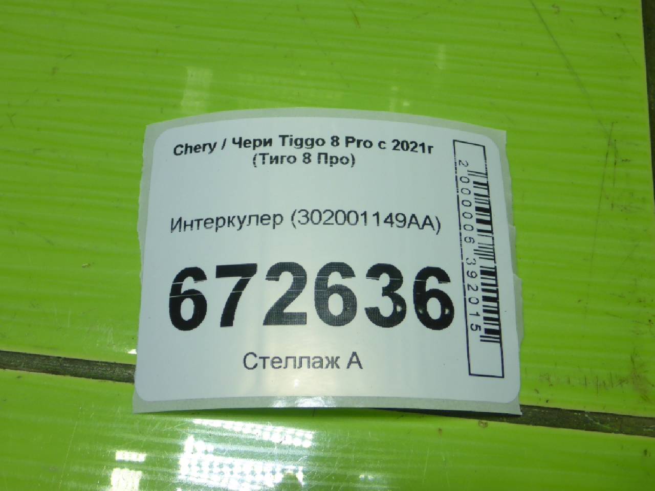 Деталь: Chery Tiggo 8 Pro - Интеркулер (302001149AA)