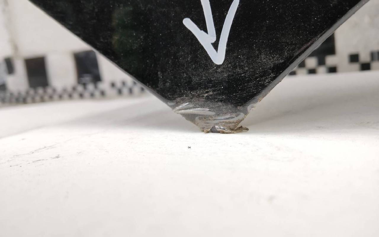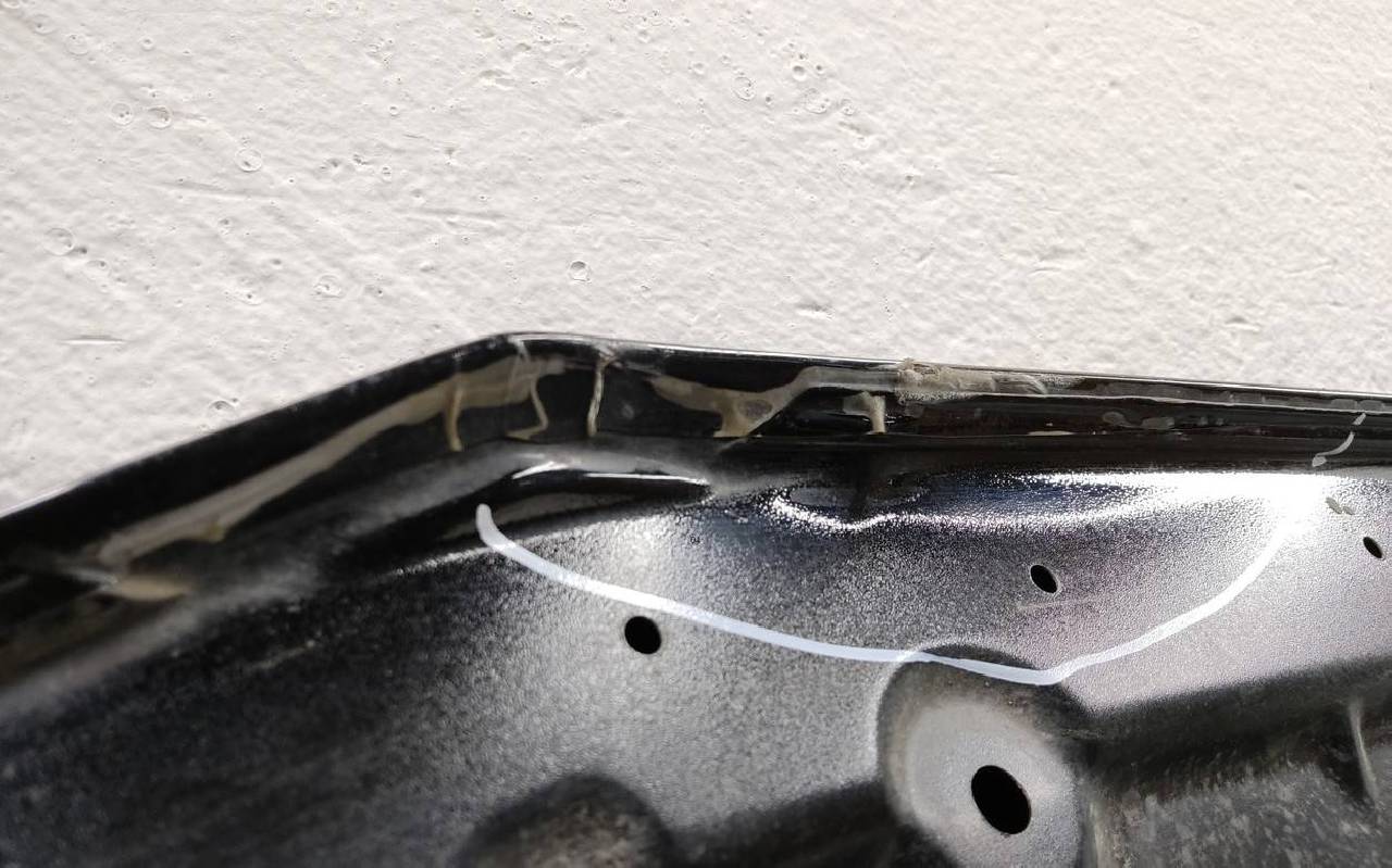 Состояние детали хорошее. Чёрного цвета в плёнке. Скол ЛКП. Вмятинка в передней части, поцарапан уголок. Потребуется незначительный ремонт