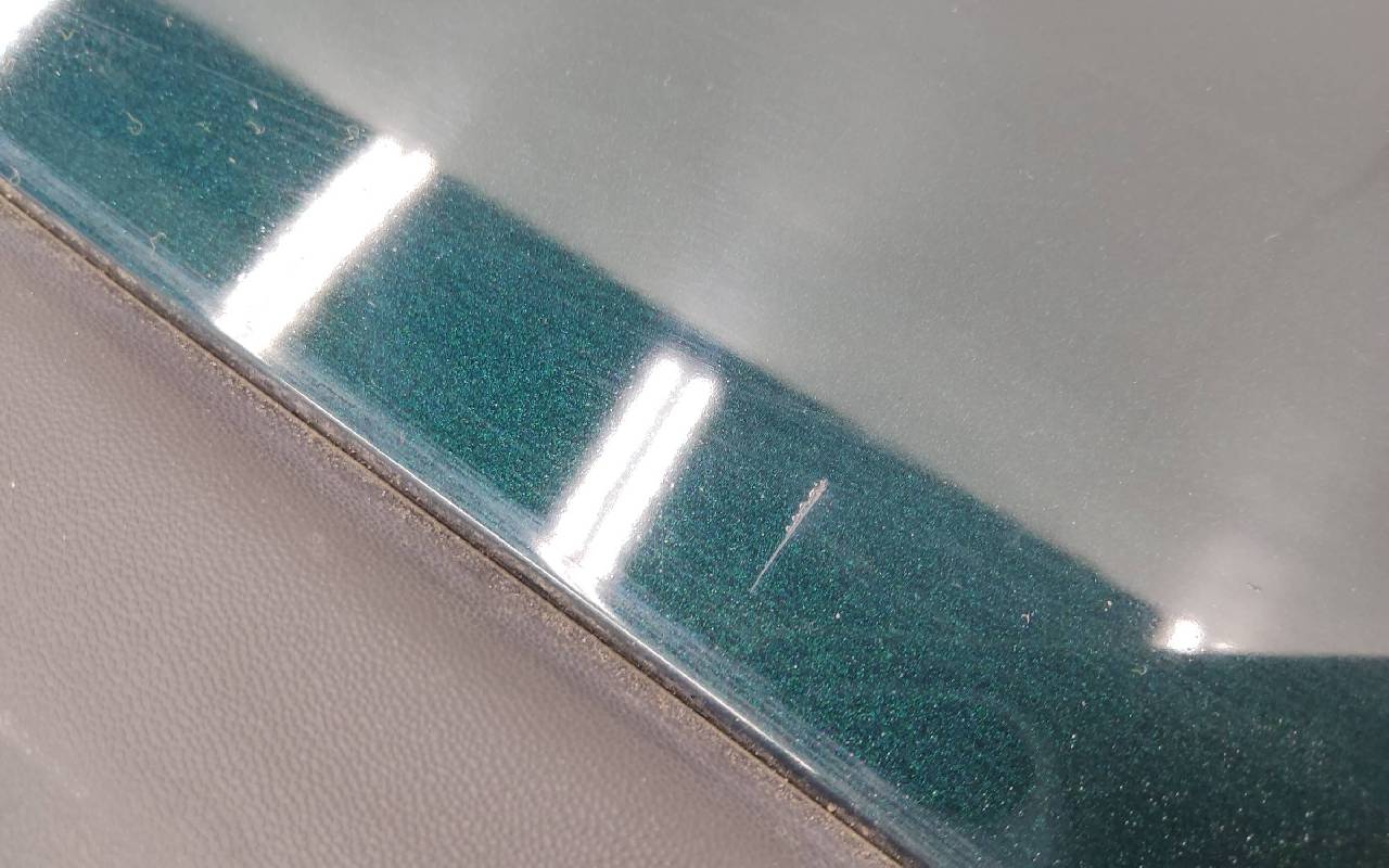 Состояние детали хорошее. Зелёного цвета, потёртости. Царапины на текстуре. Крепления целые. Ремонт не требуется