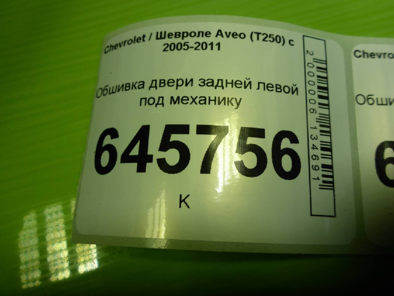 Деталь: Chevrolet Aveo T250 - Обшивка двери задней левой под механику (96649749)