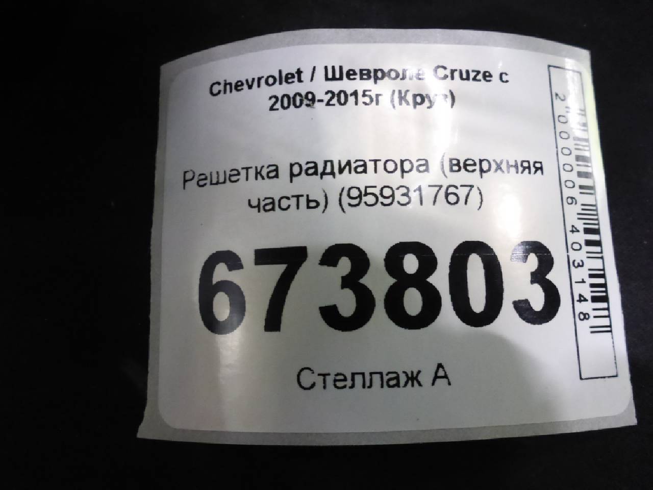 Деталь: Chevrolet Cruze - Решетка радиатора (верхняя часть) (95931767)