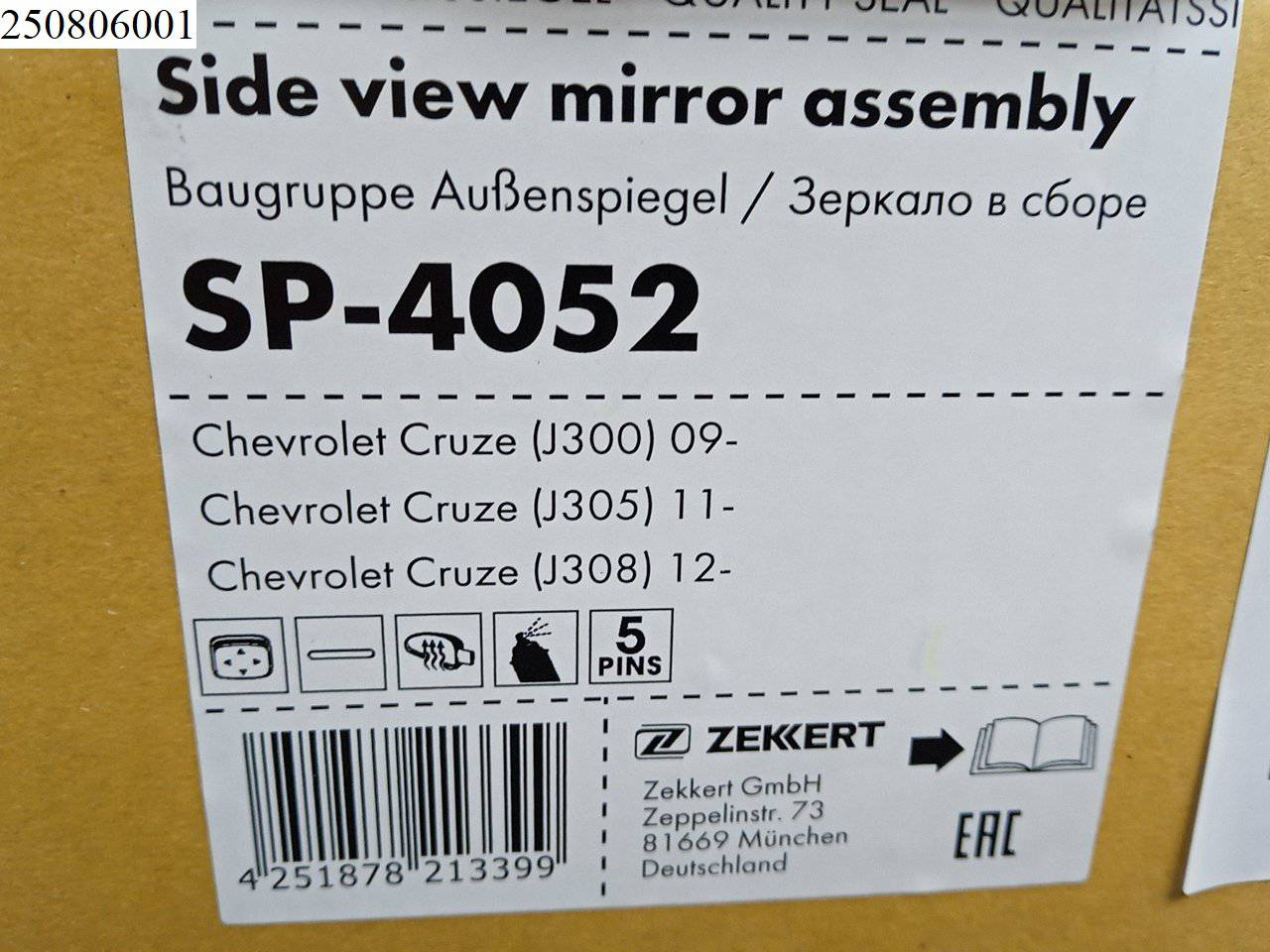 Главная > Chevrolet > Cruze > Chevrolet Cruze - Зеркало левое - SP4052;SP4052;22171192;96831841;95215430;96831841;96893022 - ZC250806001