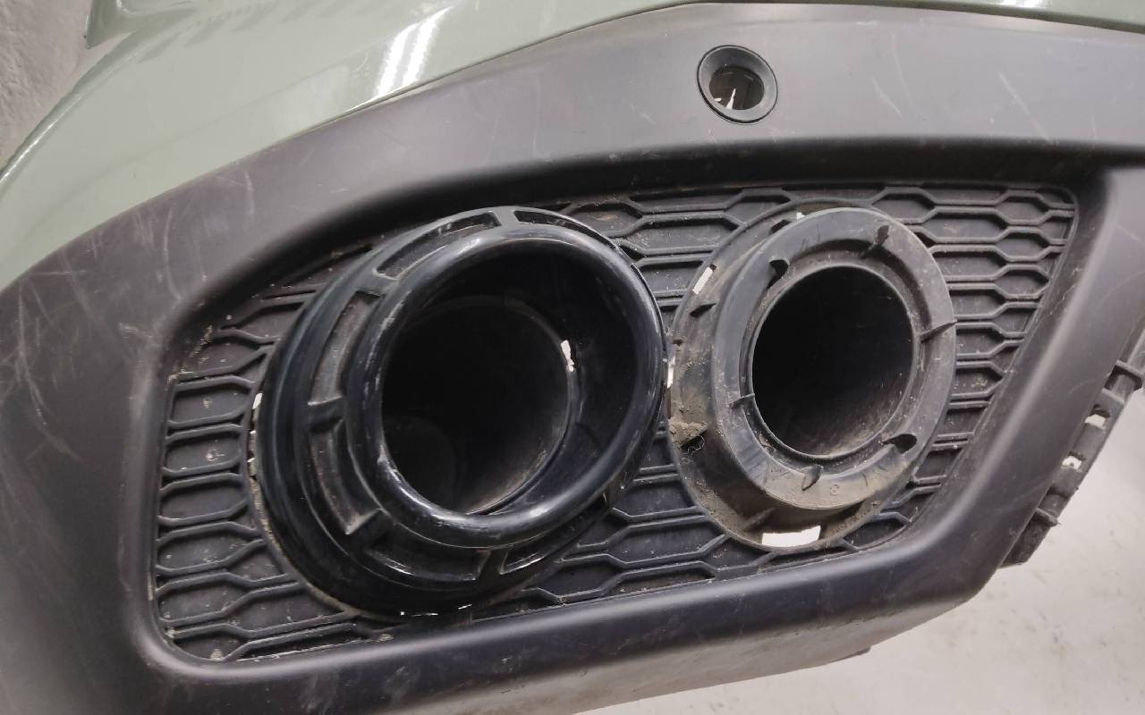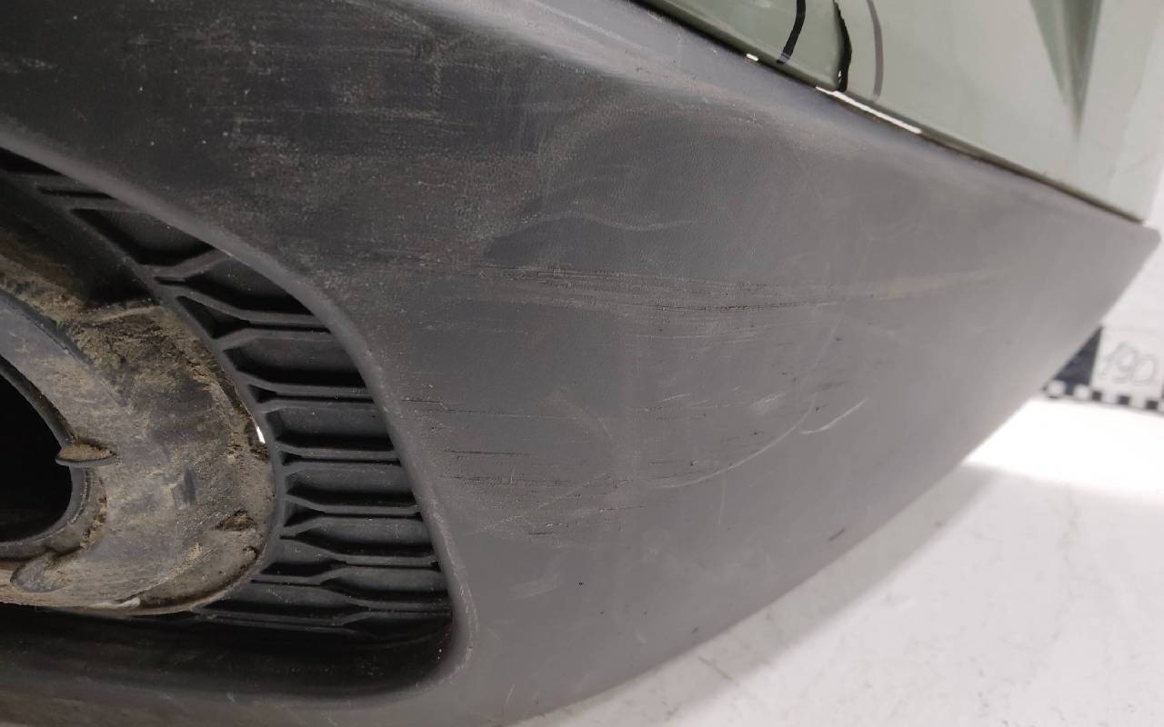 Состояние детали хорошее. Зелёного цвета с юбкой под парктроники. Трещинка. Царапины на текстуре. Крепления целые. Потребуется незначительный ремонт
