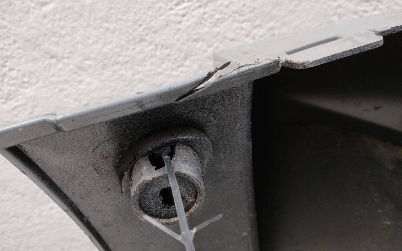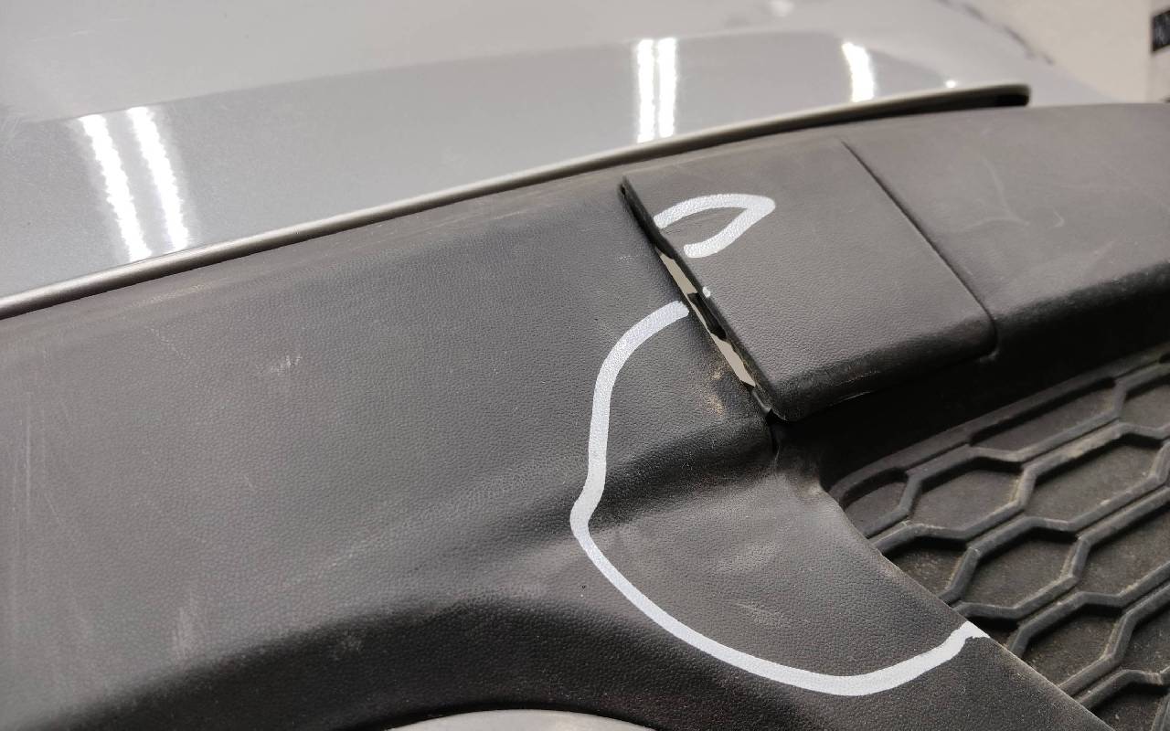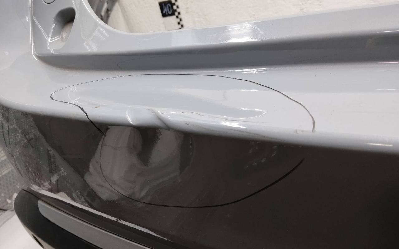 Состояние детали удовлетворительное. Серого цвета под парктроники. Вмятины, дефект пластика на фото. Крепления целые. Потребуется ремонт