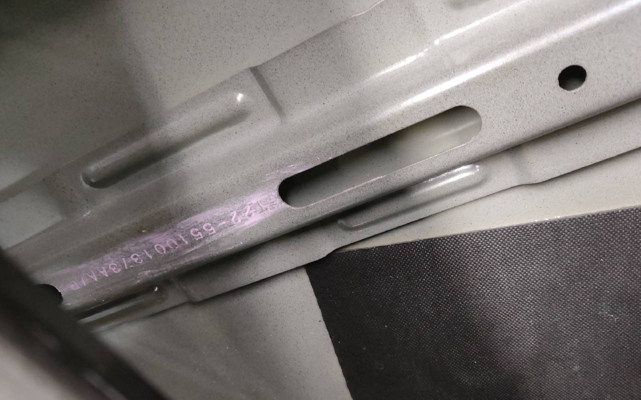 Состояние детали удовлетворительное. Чёрного цвета, скол ЛКП. Вмятины. Потребуется ремонт