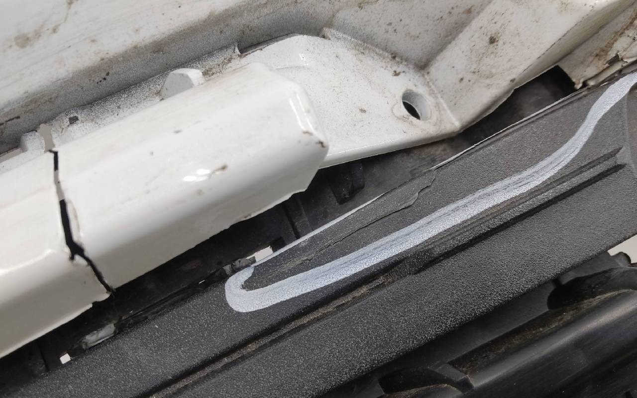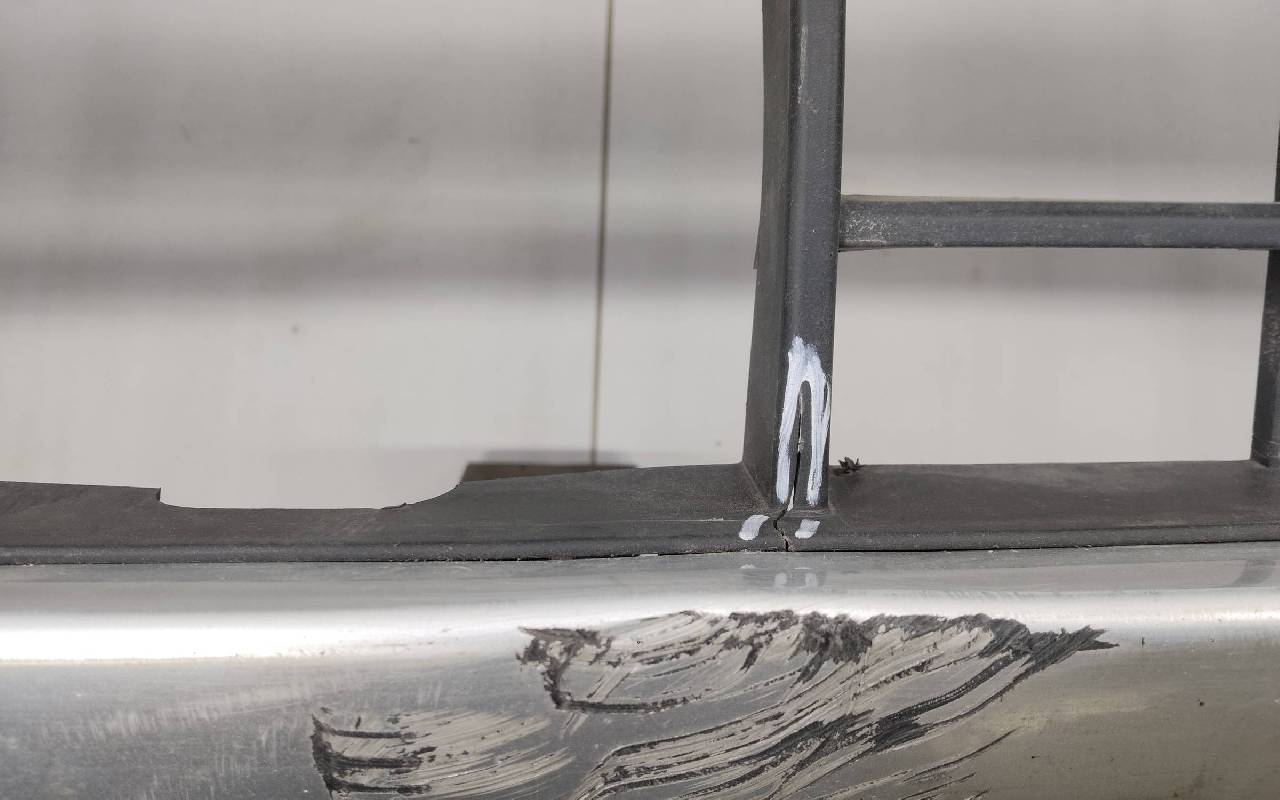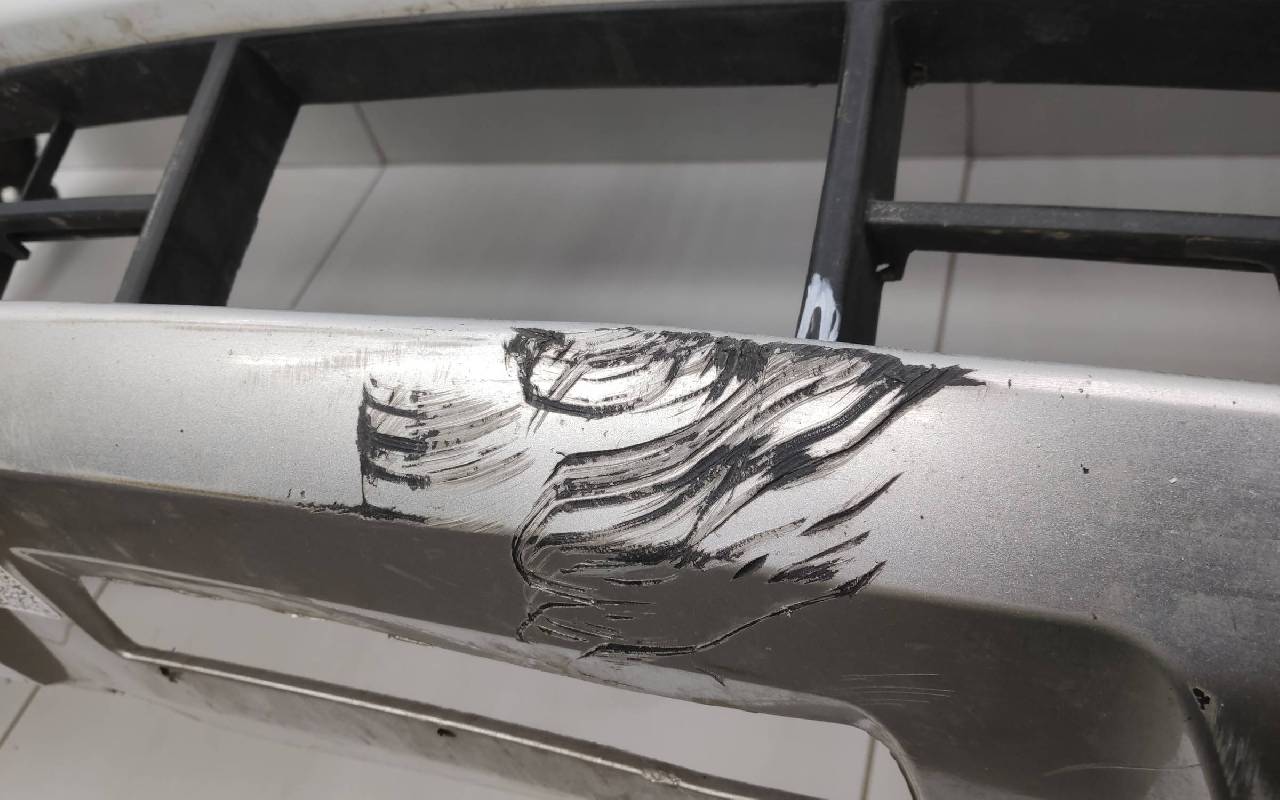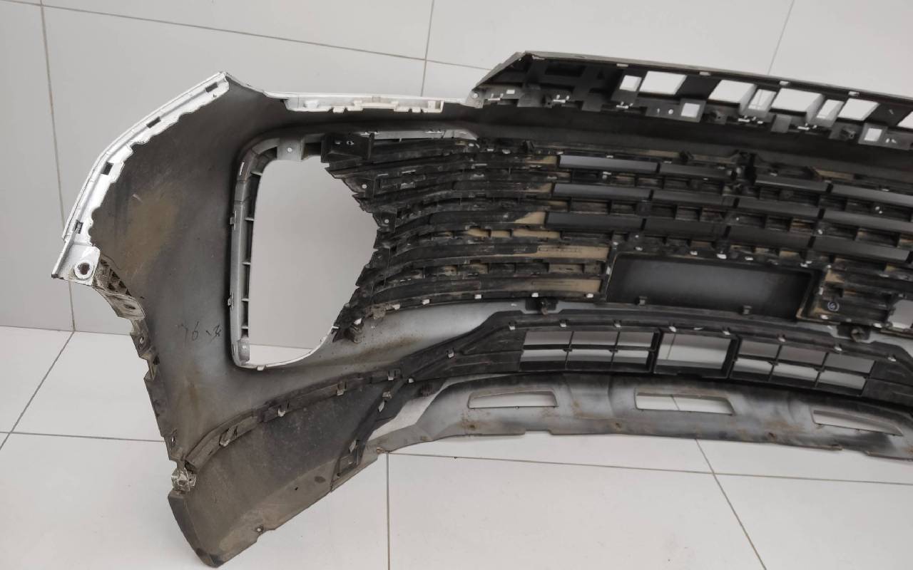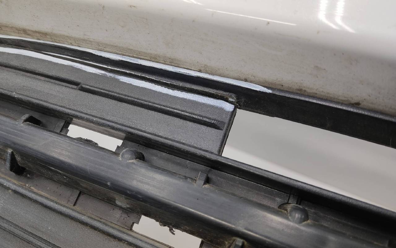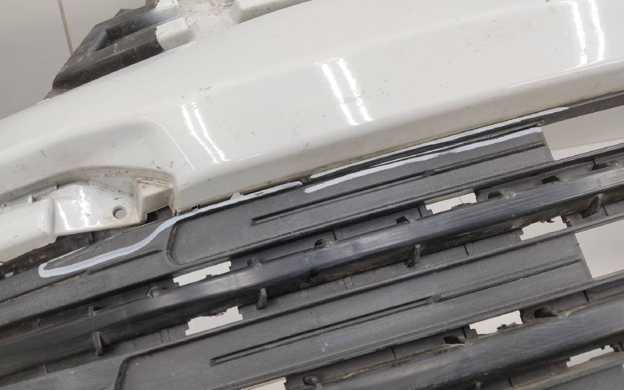 Состояние детали хорошее. Белого цвета под парктроники. Царапины. Небольшие трещины на решетках. Крепления целые. Потребуется незначительный ремонт