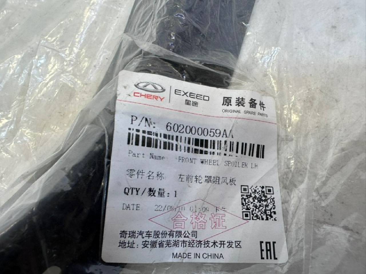 Деталь: Exeed TXL - Брызговик лев (новая)