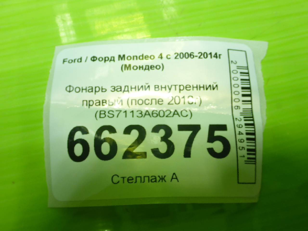 Деталь: Ford Mondeo 4 - Фонарь задний внутренний правый (после 2010г) (BS7113A602AC)