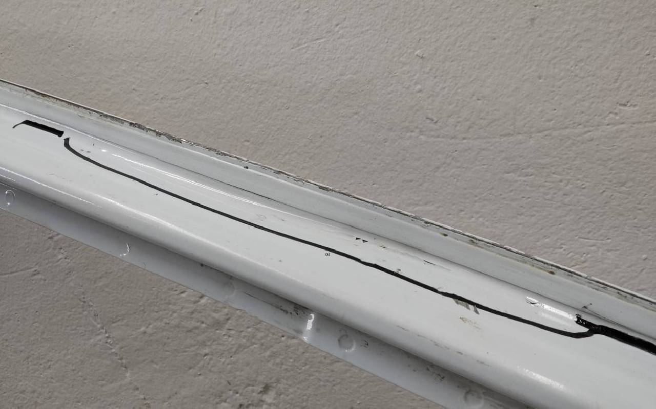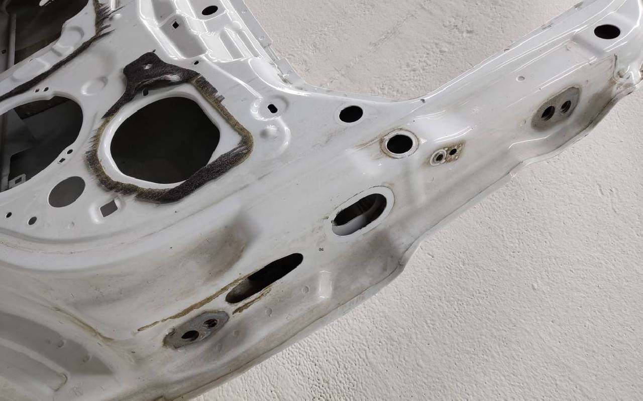 Состояние детали хорошее. Белого цвета, скол ЛКП. Небольшая вмятина по рамке оконного проёма. Тычок на плоскости. Потребуется незначительный ремонт