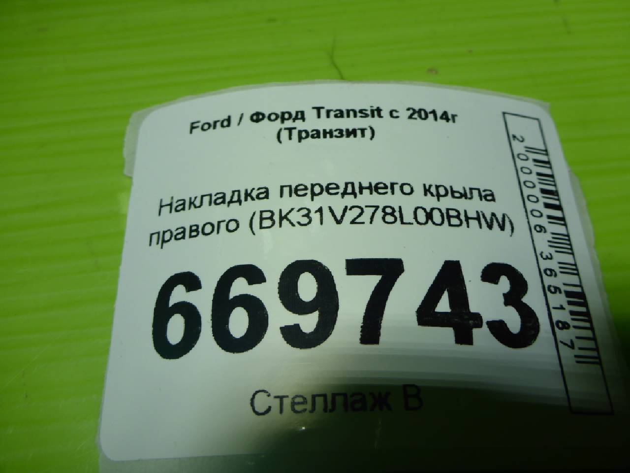 Деталь: Ford Transit TT9 2006 - Накладка переднего крыла правого (BK31V278L00BHW)