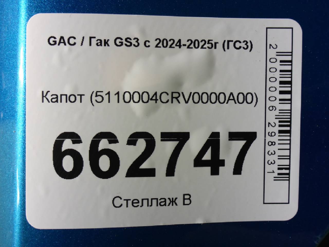 Деталь: GAC GS3 - Капот (5110004CRV0000A00)