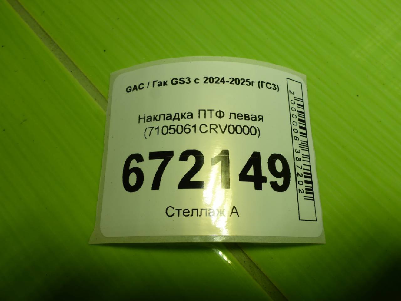 Купить Накладка ПТФ левая (7105061CRV0000) 7105061CRV0000 для GAC GS3 (ГАЦ ГС3) RR672149 ✓ с доставкой по Москве и России