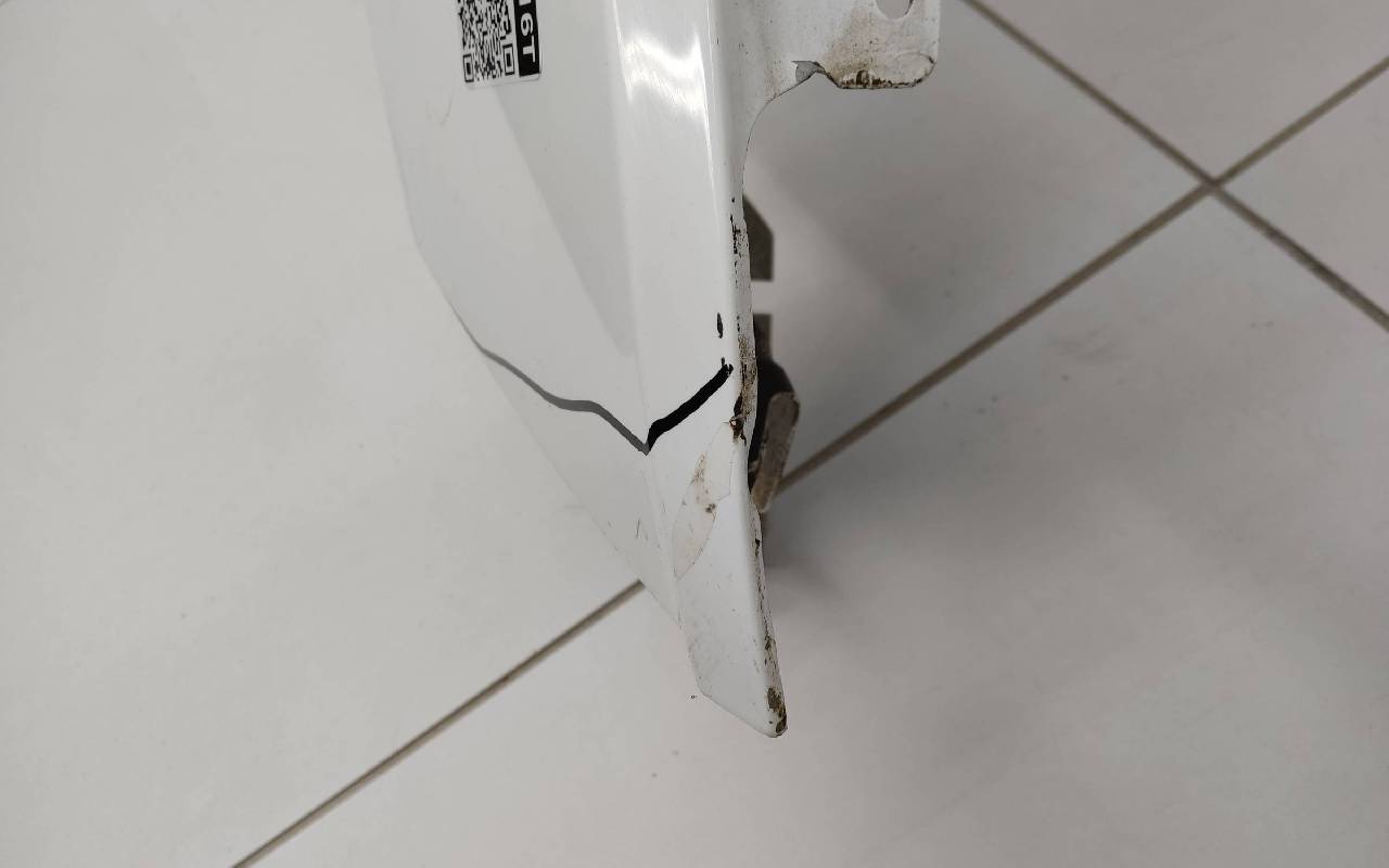 Состояние детали хорошее. Белого цвета, скол ЛКП. Небольшая вмятина в передней части. Потребуется незначительный ремонт