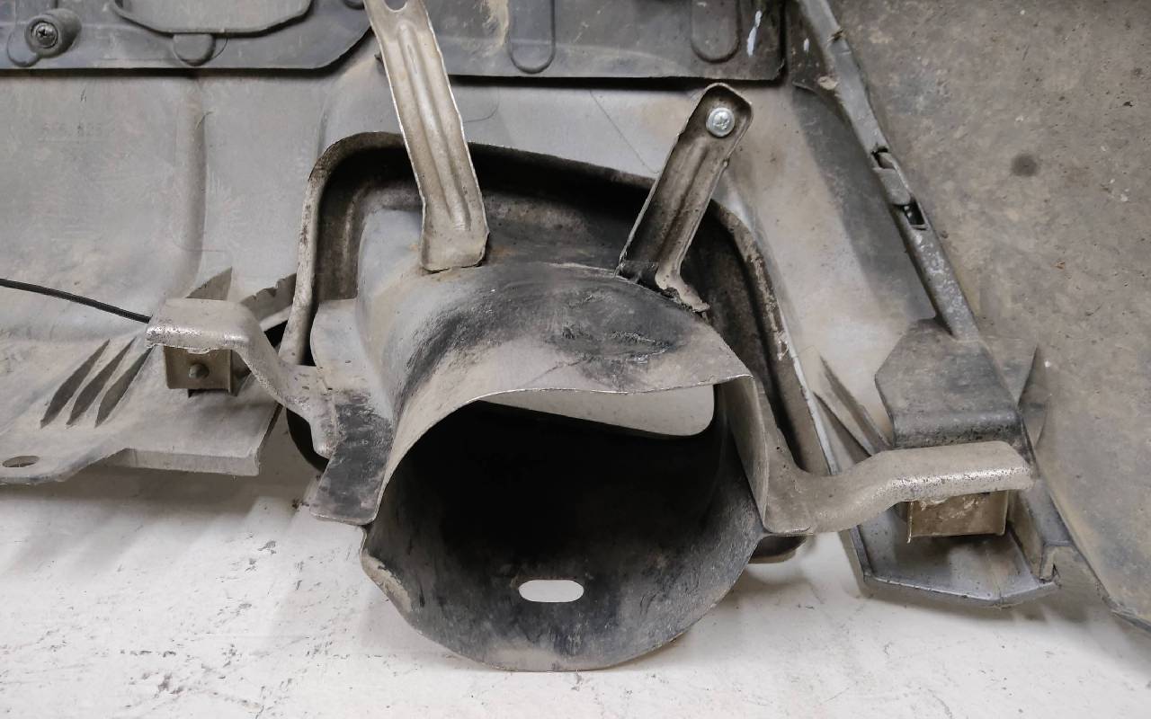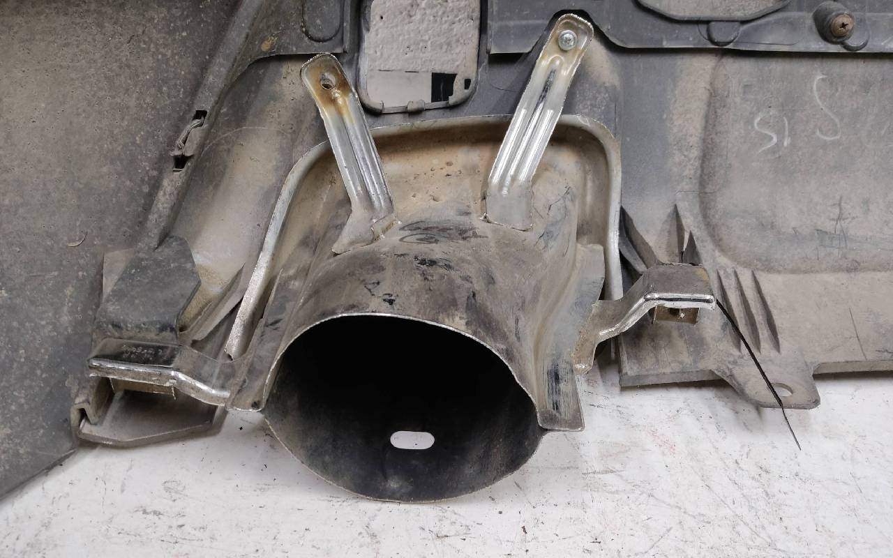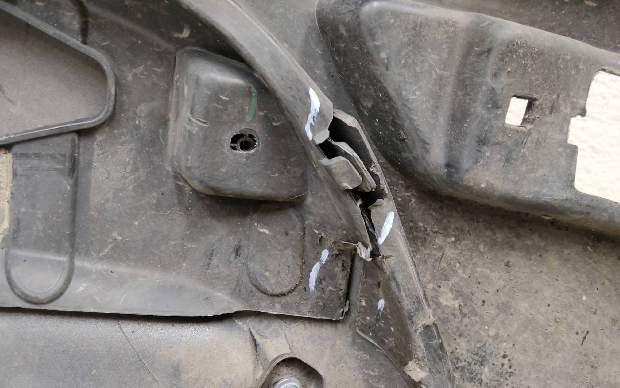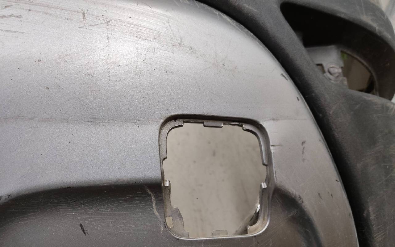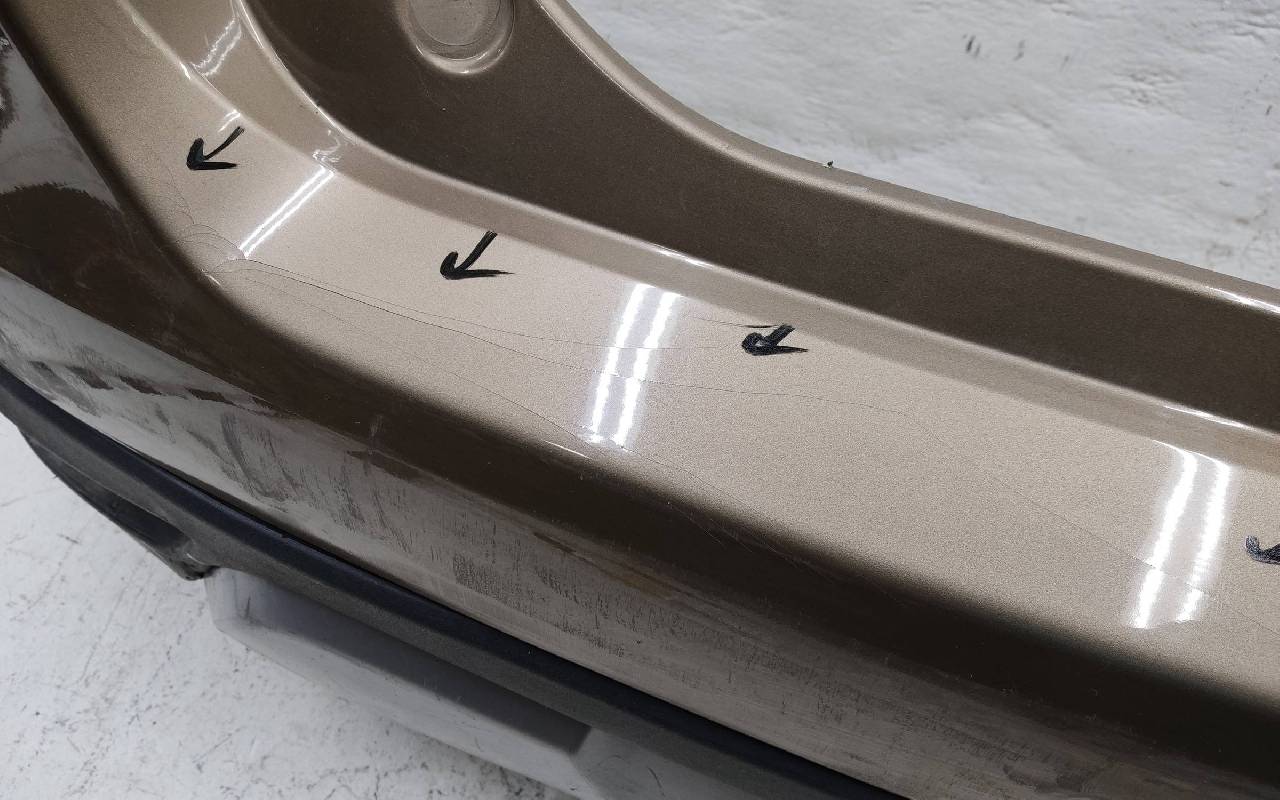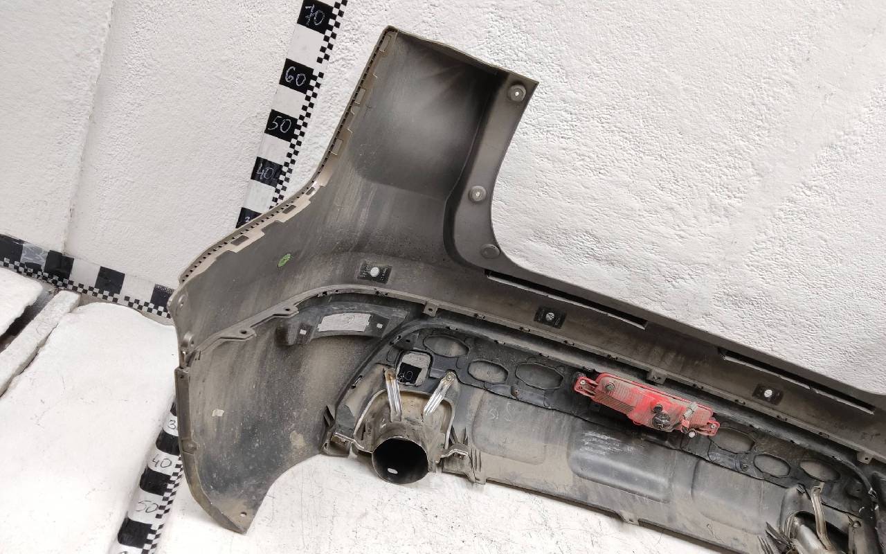 Состояние детали хорошее. Коричневого цвета под парктроники. В сборе, без отражателей. Царапины, дефект ЛКП на фото. Вмятинка на накладке. Дефект двух креплений на юбке. Может потребоваться незначительный ремонт