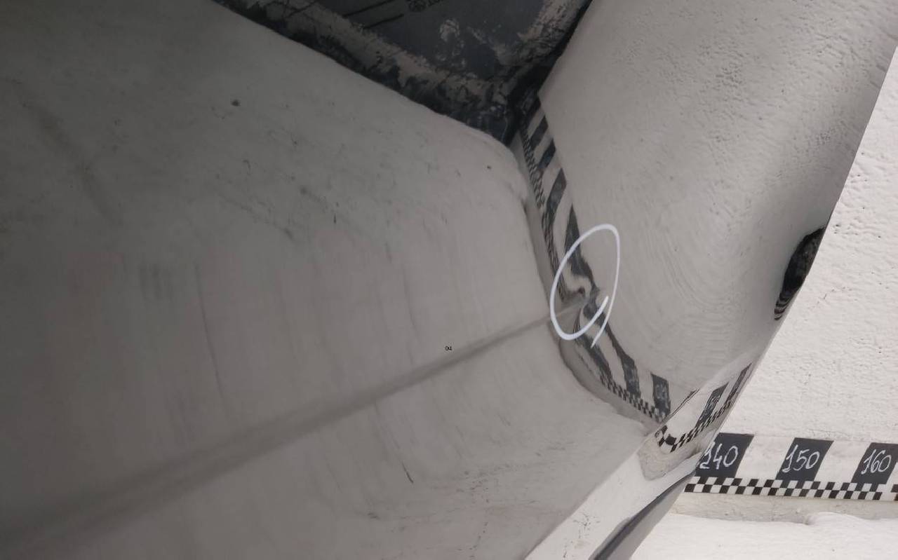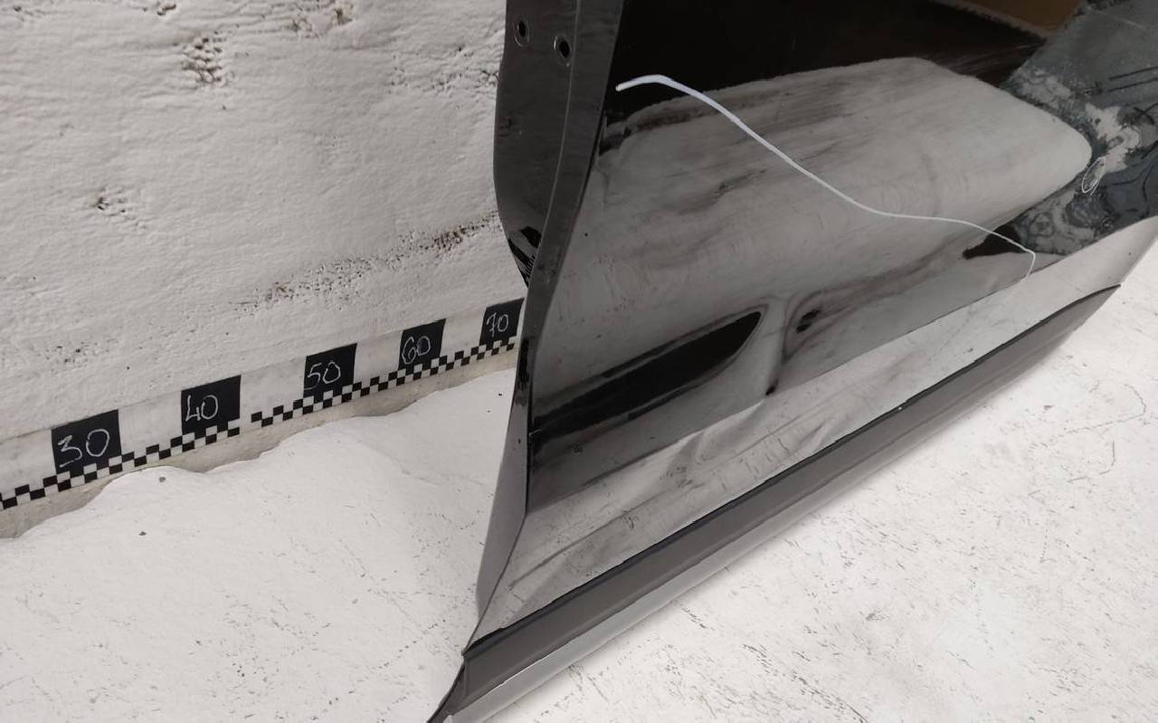 Состояние детали хорошее. Чёрного цвета, скол ЛКП. Вмятина. Потребуется ремонт