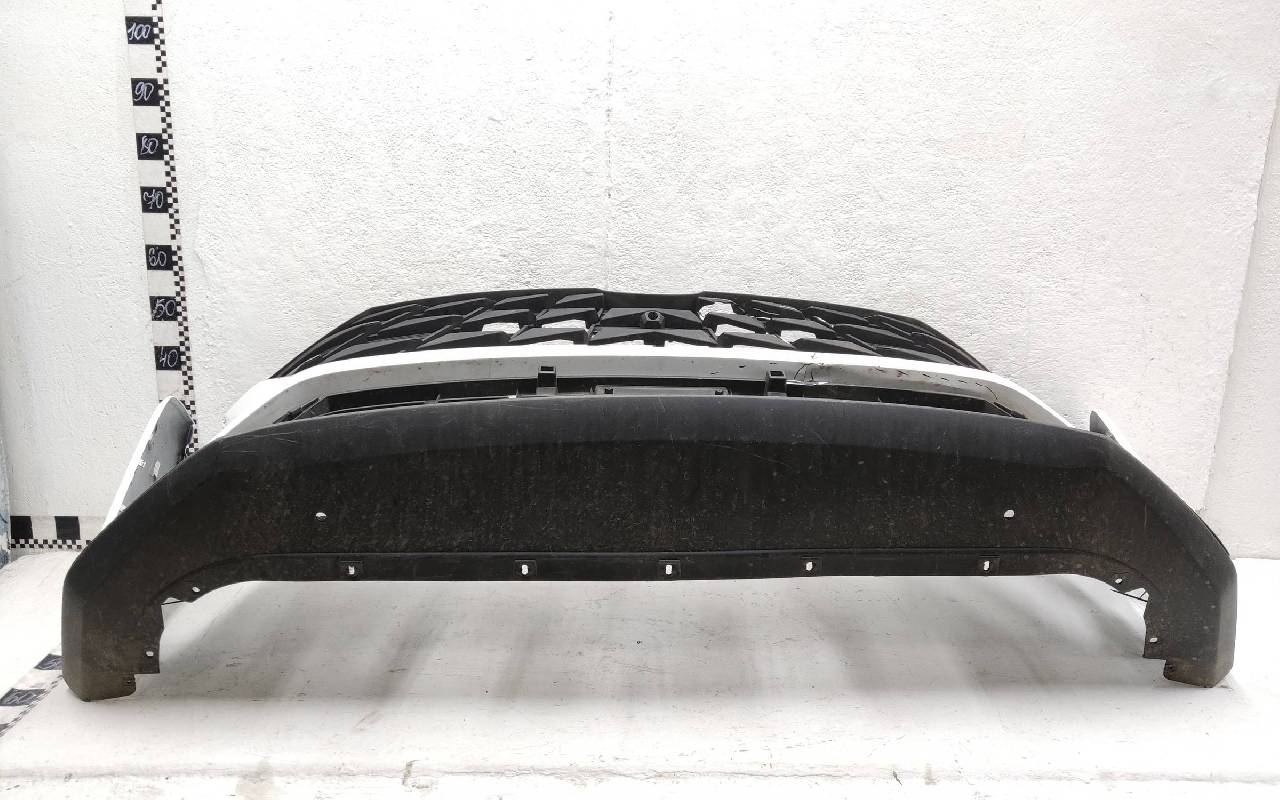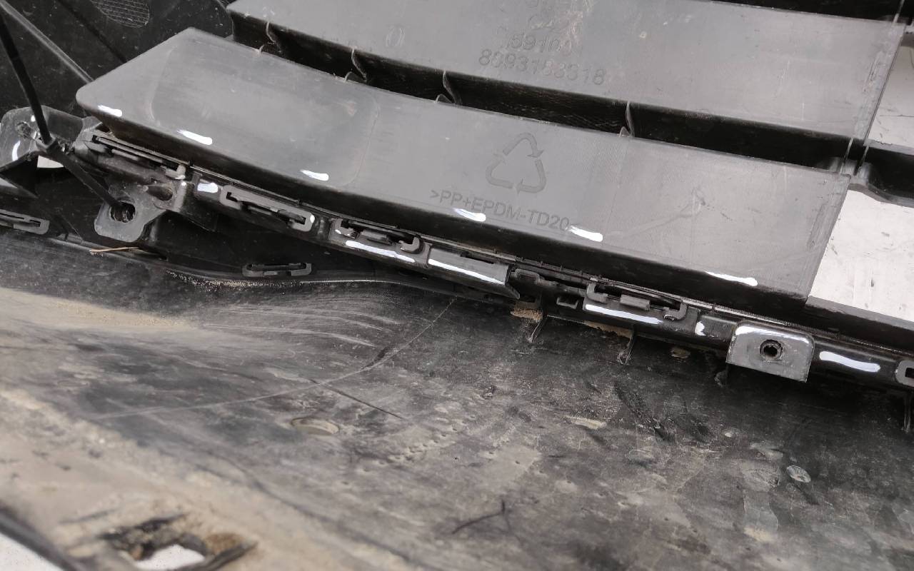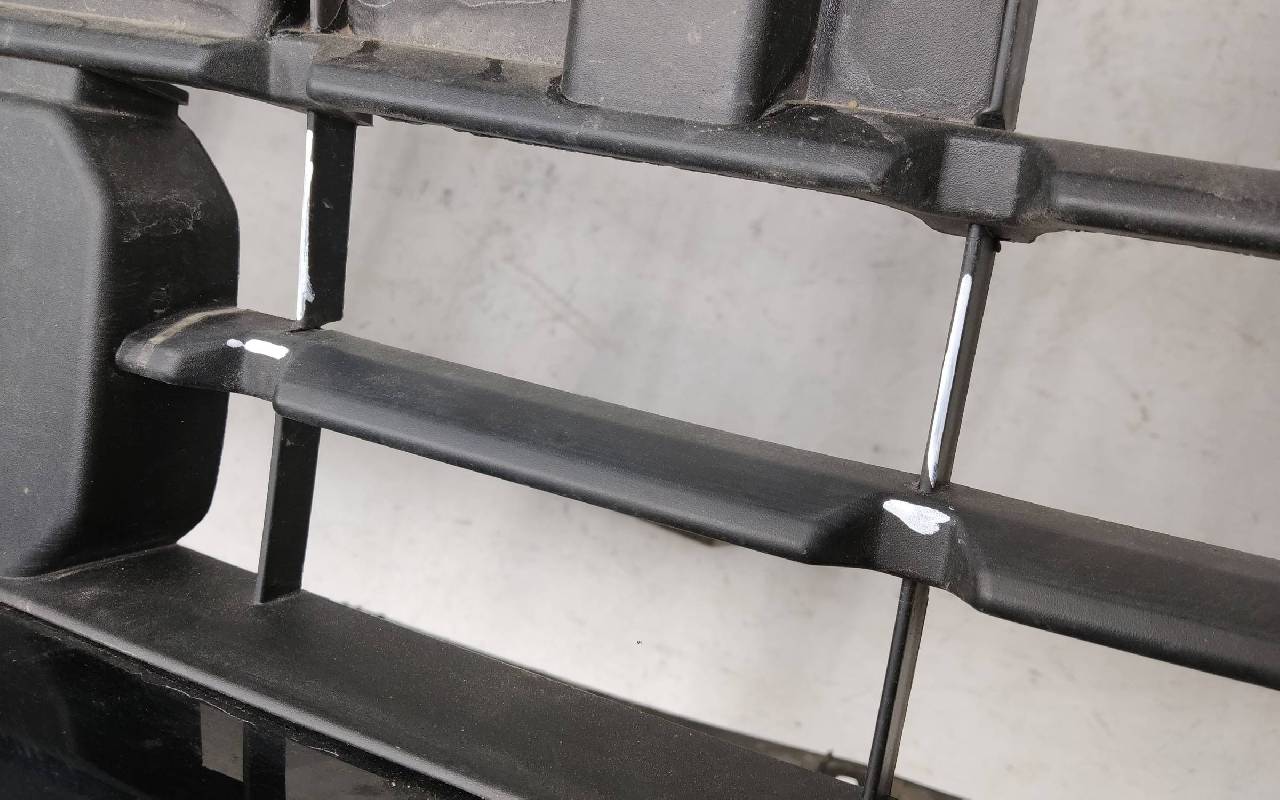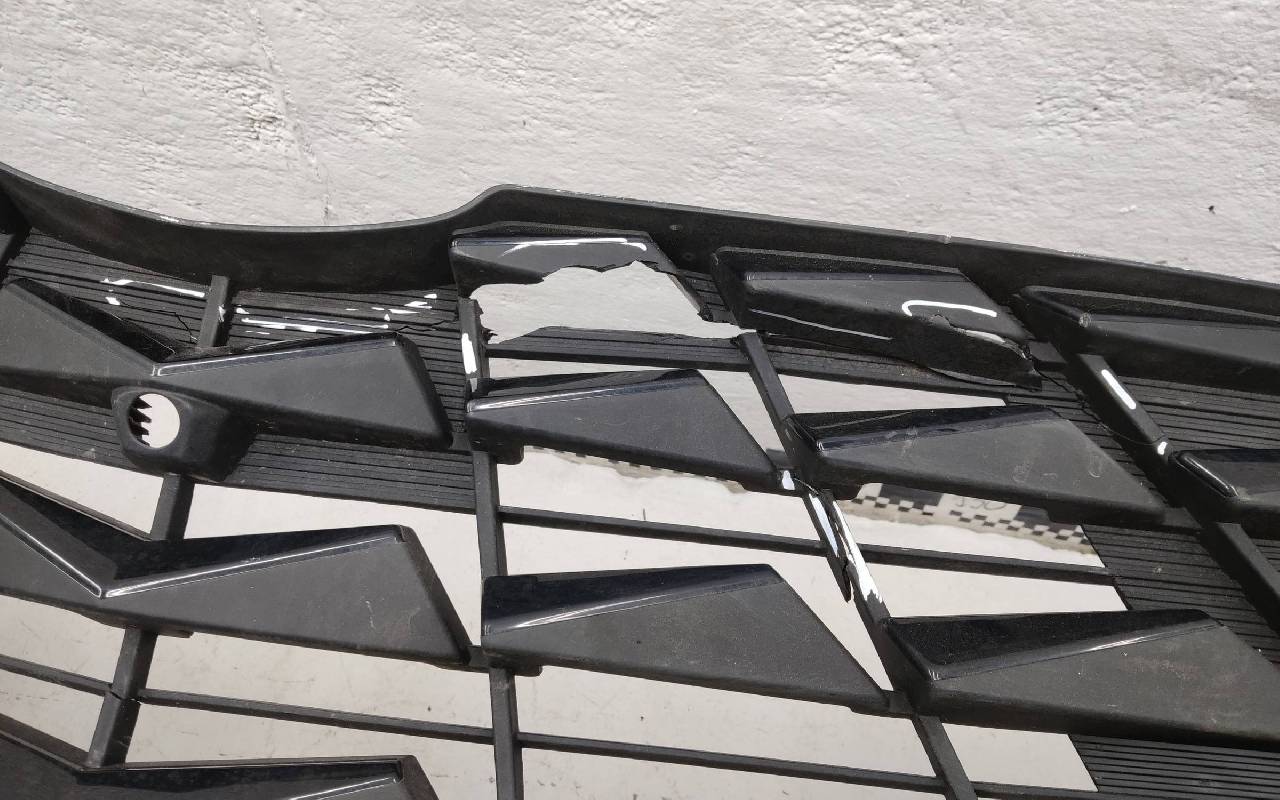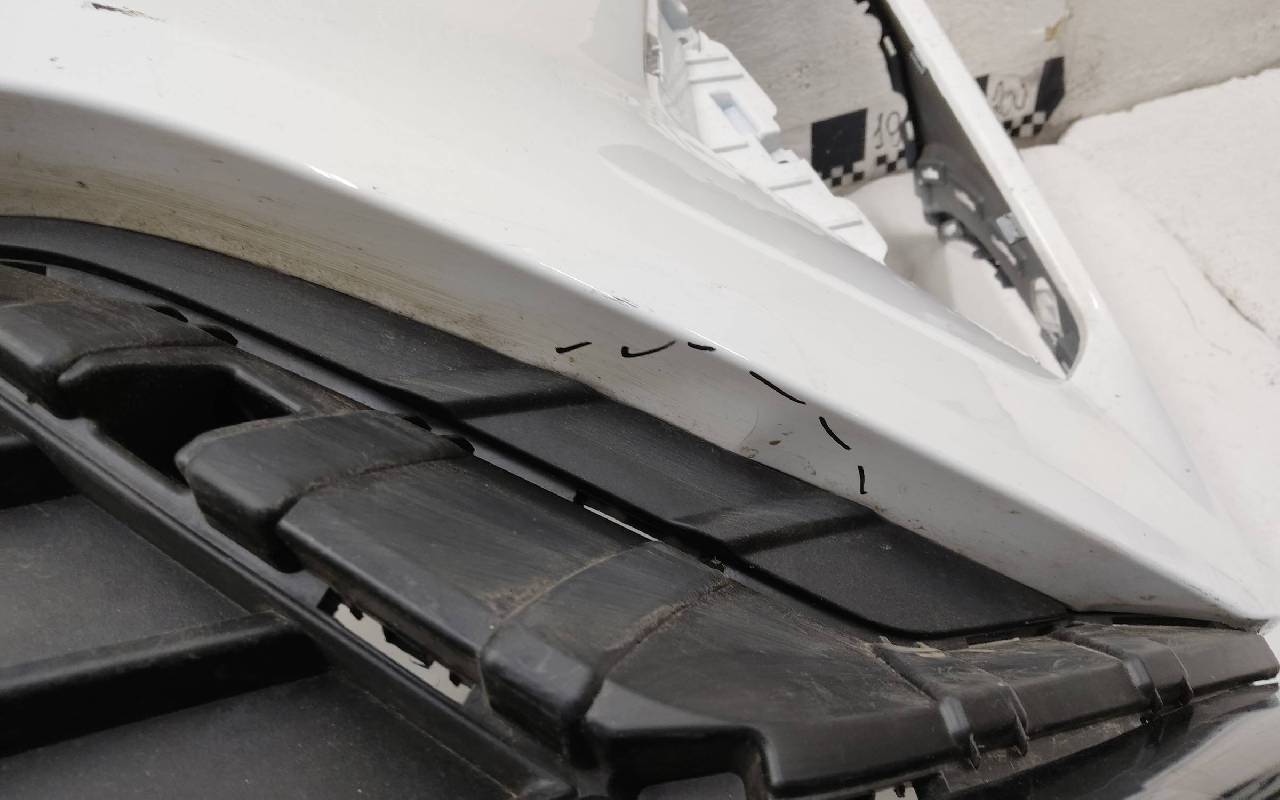 Состояние детали удовлетворительное. Белого цвета. Вмятинки, небольшие трещины. Верхняя решетка по сколами. Дефект пластика вдоль кронштейна нижней решетки к юбке. Потребуется ремонт