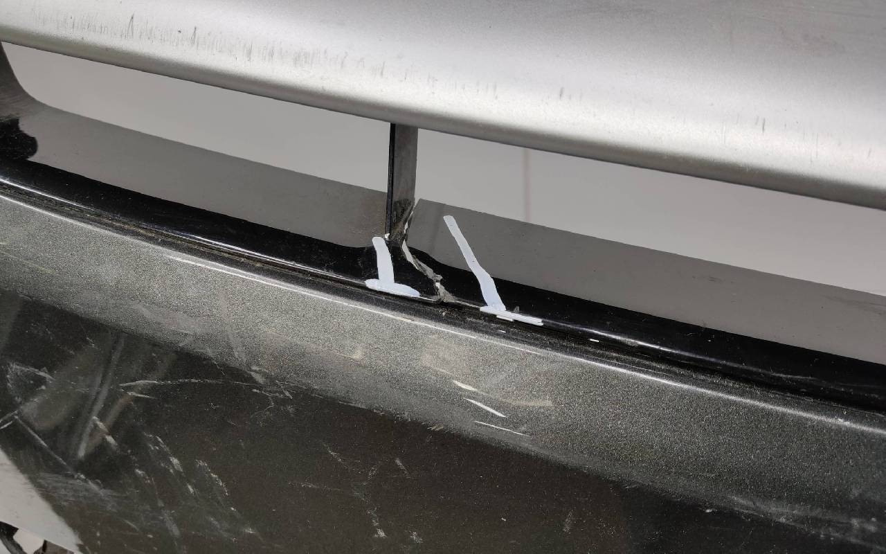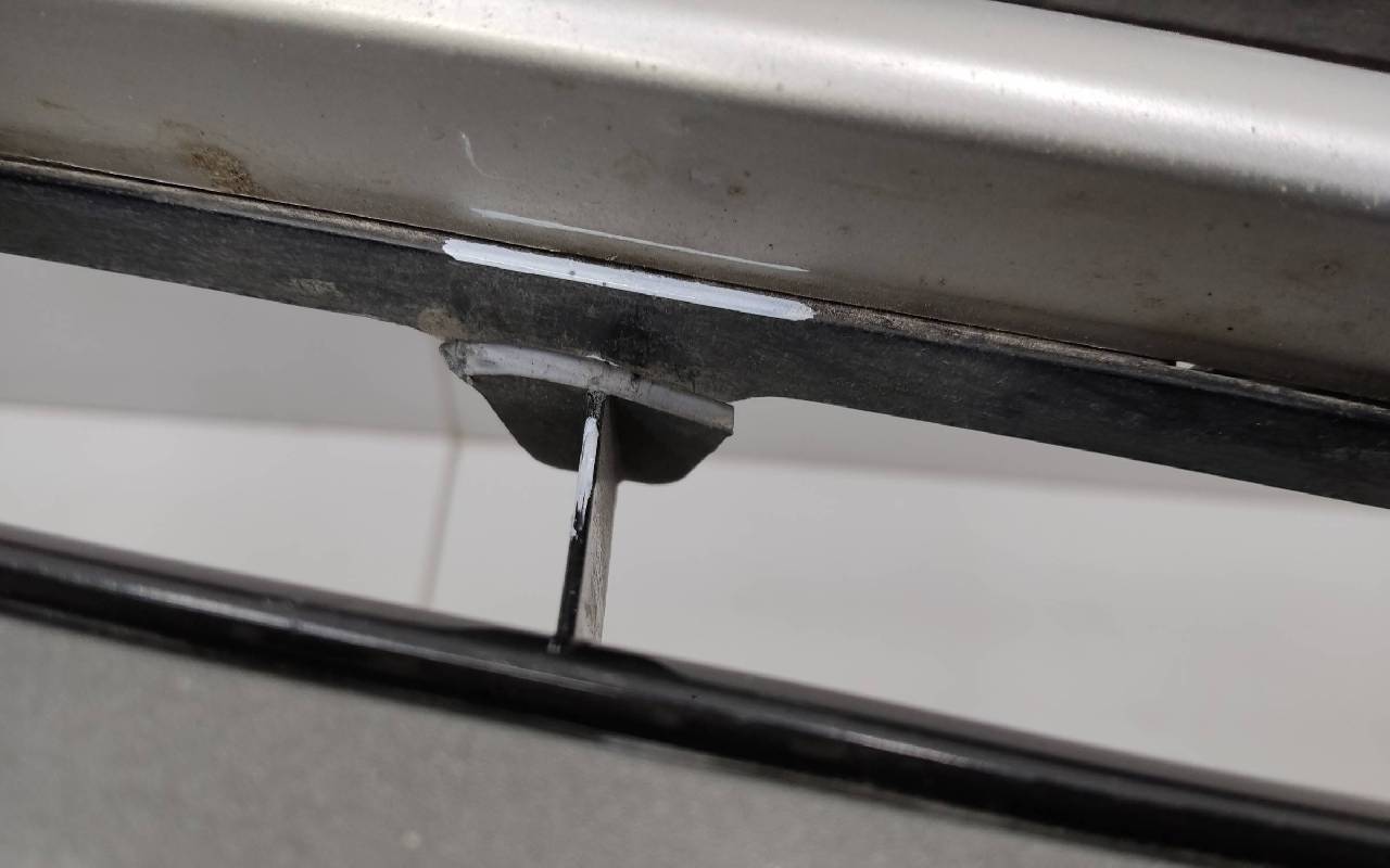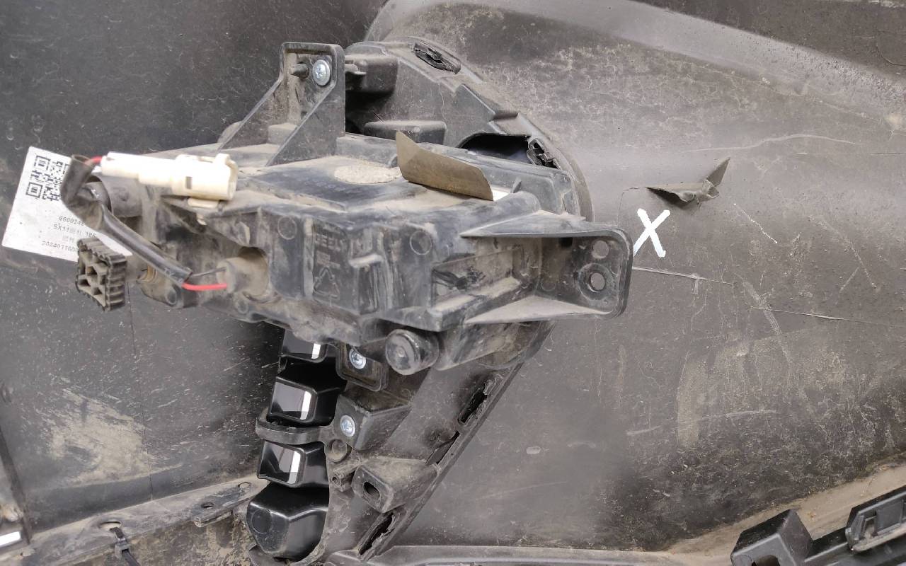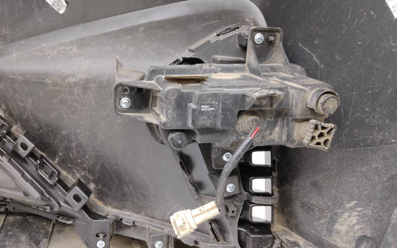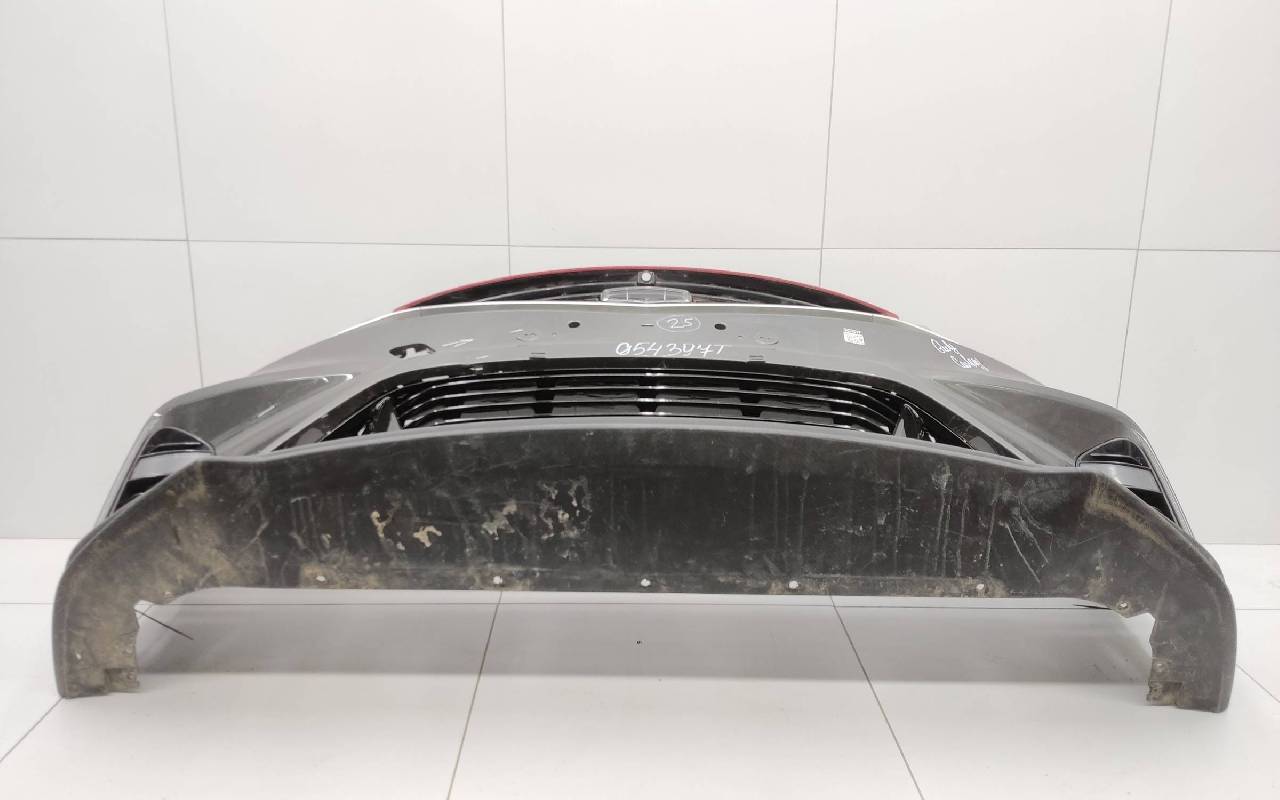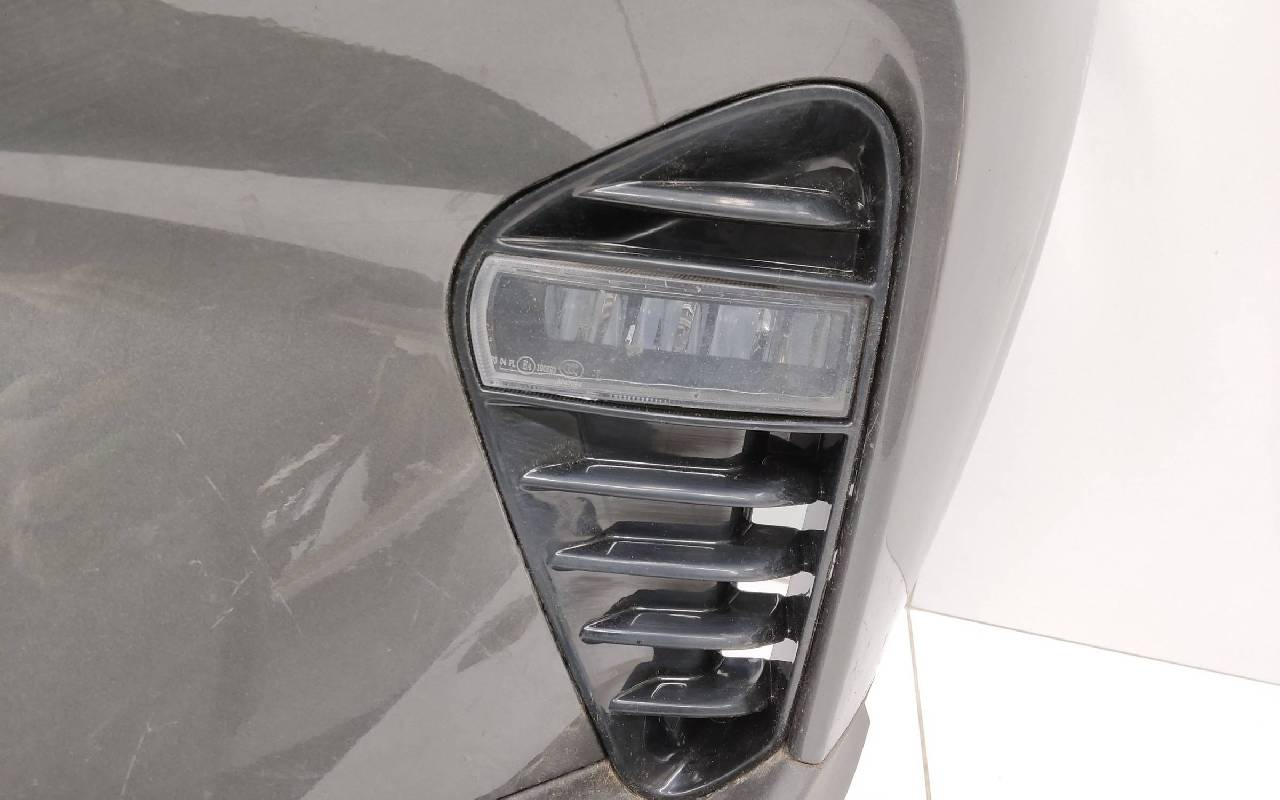 Состояние детали хорошее. Серого цвета в сборе без накладок нижней решетки. Небольшой дефект пластика на фото, трещинки на решетке. Рамки и решетка бампера не оригинал. Отсутствует одно крепление под левую ПТФ, два под нижнюю решетку и замок под правую накладку. Потребуется незначительный ремонт