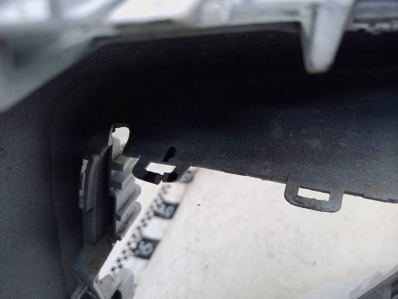 Состояние детали хорошее. Под парктроники, потёртости поверхности, дефекты пластика на фото. Отсутствует одно крепление, направляющая и два замка под ПТФ. Ремонтопригодно