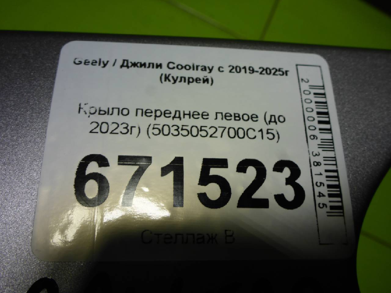 Главная > Geely > Coolray > Geely Coolray - Крыло переднее левое (до 2023г) (5035052700C15) - 5035052700C15 - RR671523