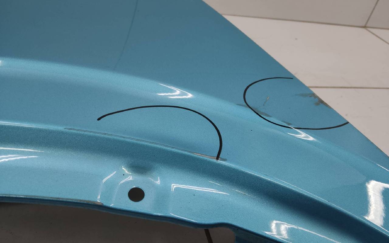 Состояние детали хорошее. Голубого цвета, скол ЛКП. Небольшие вмятины. Потребуется