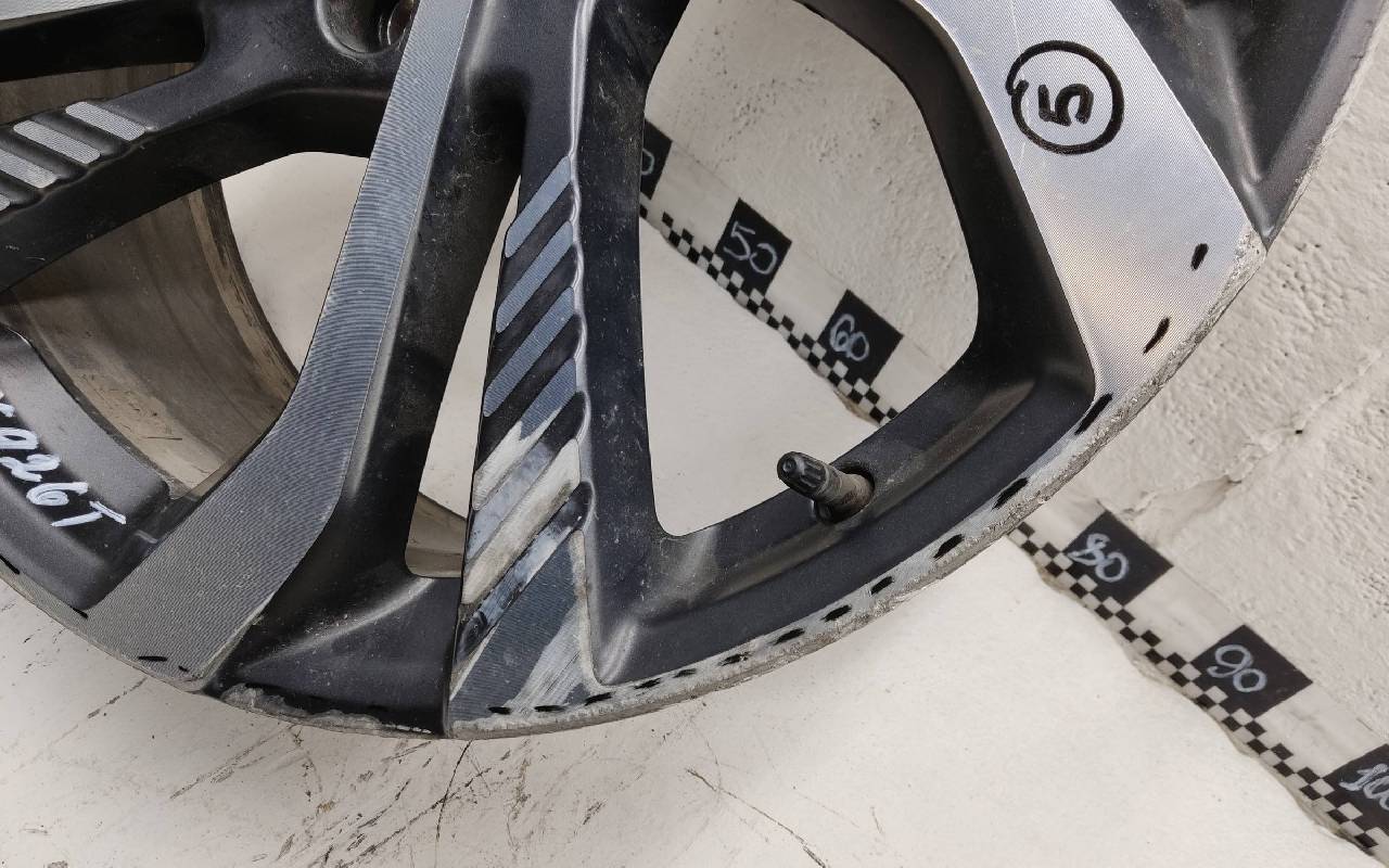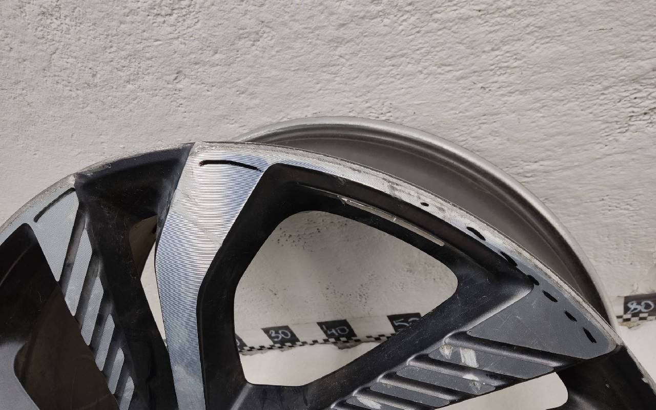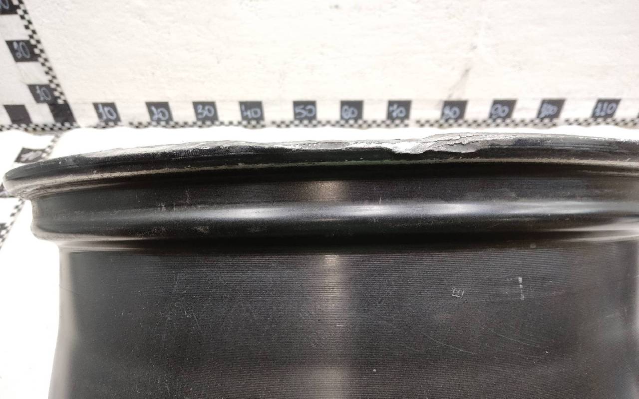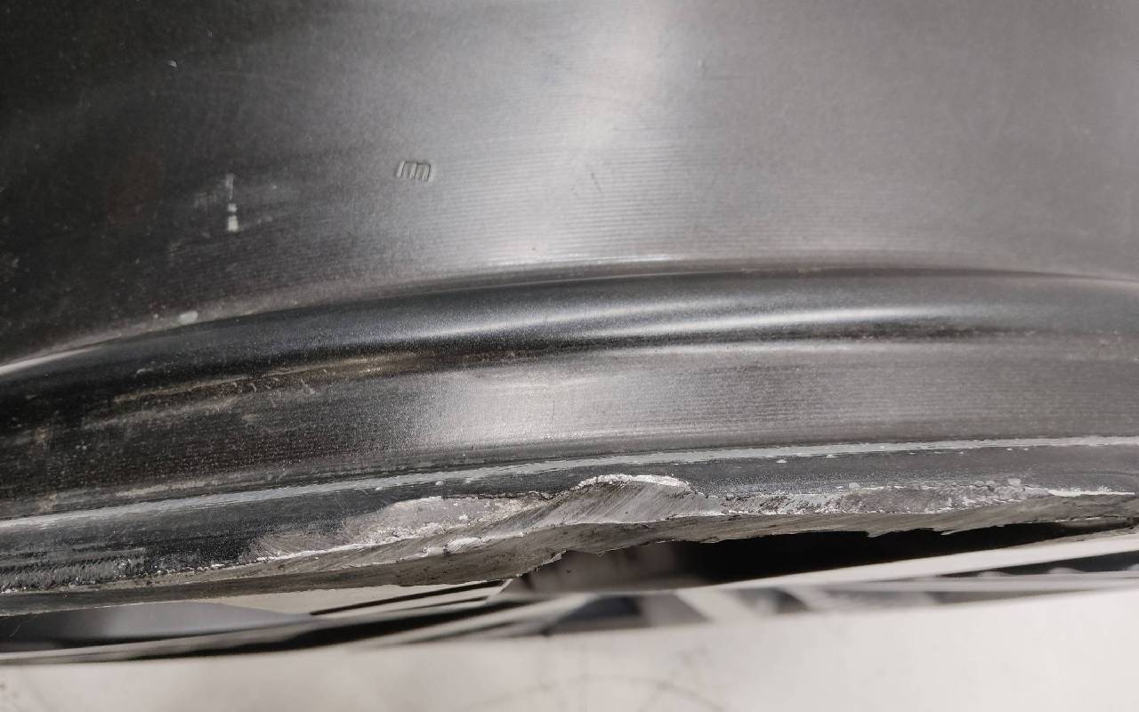 Состояние детали удовлетворительное. Тёмно-серого цвета, скол ЛКП. Царапины по внешнему ободу и на лицевой поверхности. Потребуется ремонт