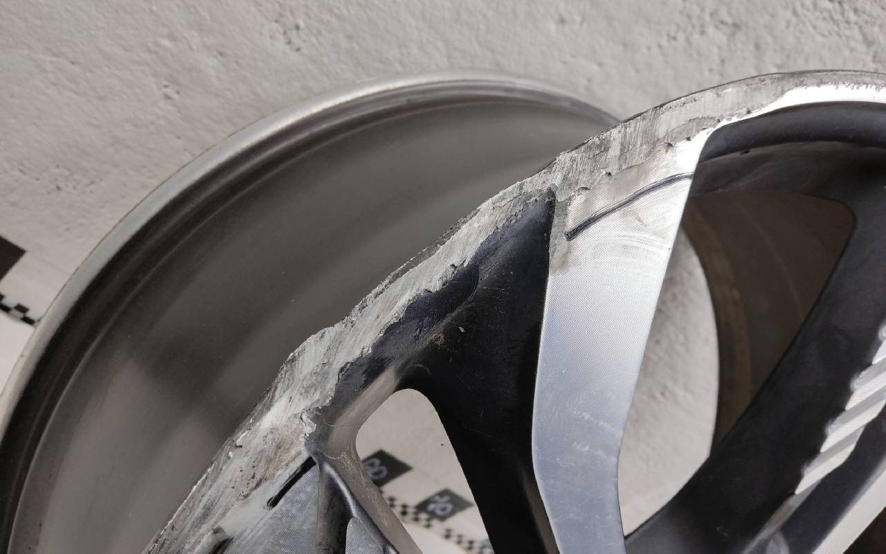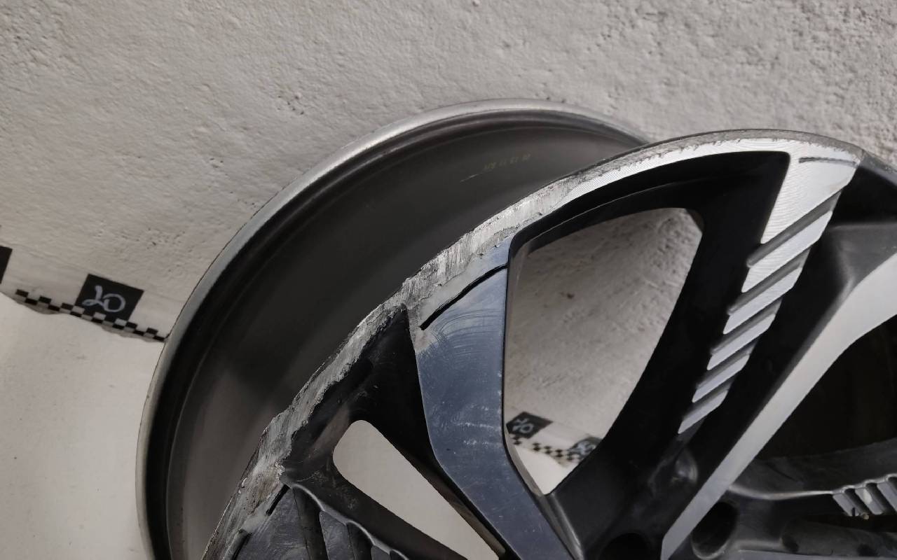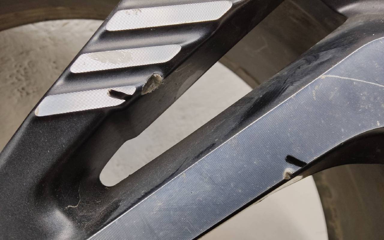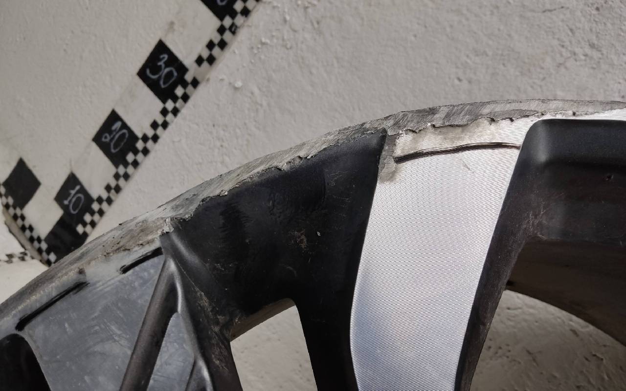 Состояние детали удовлетворительное. Тёмно-серого цвета, скол ЛКП. Царапины по внешнему ободу и на лицевой поверхности. Потребуется ремонт