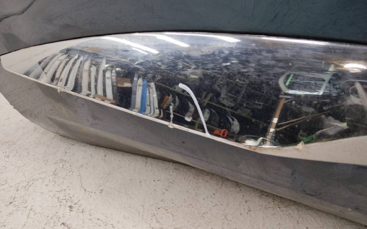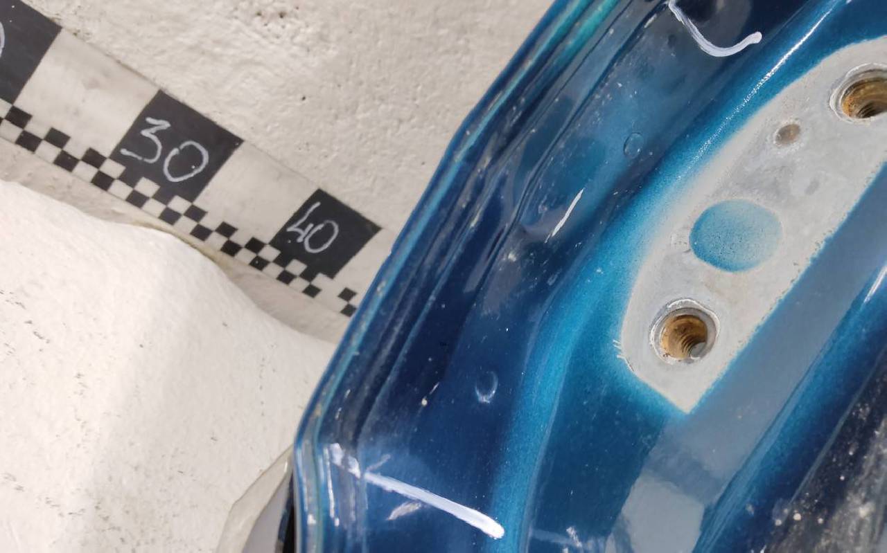 Состояние детали удовлетворительное. Сине-зелёного цвета, скол ЛКП. В плёнке. Вмятины. Потребуется ремонт