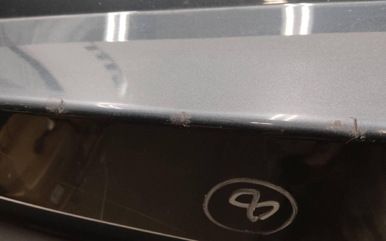 Состояние детали хорошее. Серого цвета под парктроники. Царапины, небольшая неровность на полке. Крепления целые. Может потребоваться незначительный ремонт
