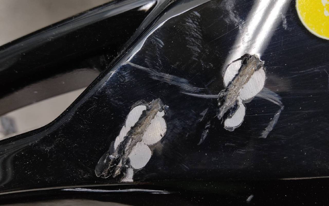 Состояние детали хорошее. Чёрного цвета, скол ЛКП. Небольшие царапинки. Под покраску