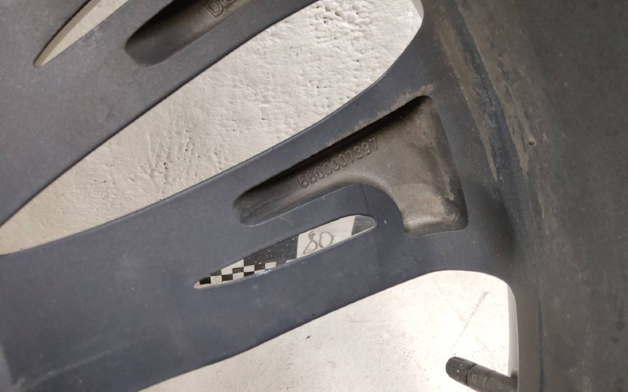 Состояние детали хорошее. Тёмно-серого цвета с датчиком TPMS. Небольшие царапины по внешнему ободу. Потребуется незначительный ремонт