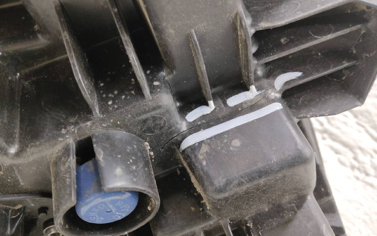 Состояние детали очень плохое. Пятно на внутренней поверхности стекла, пыль. Скол корпуса. Отсутствуют два крепления, одно сломано. На запчасти, без гарантии на возврат