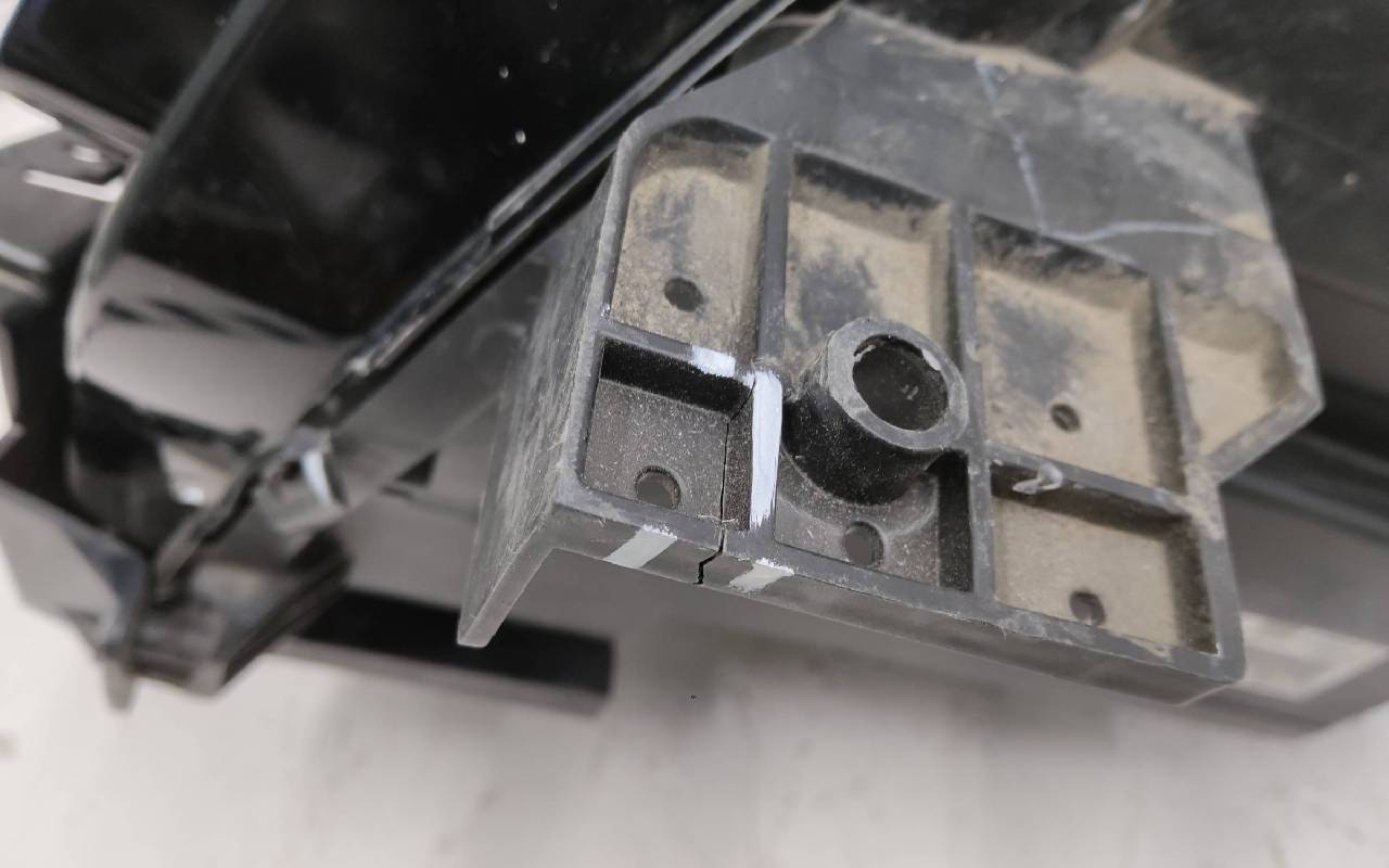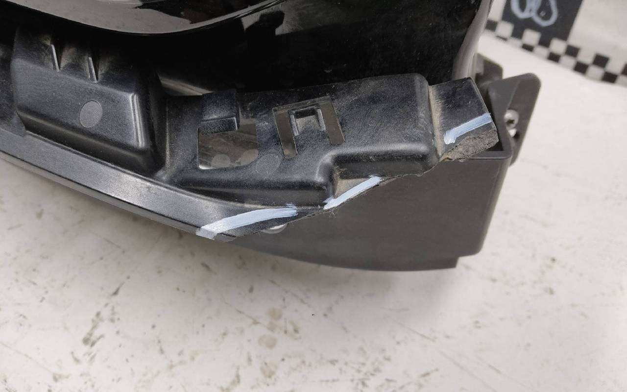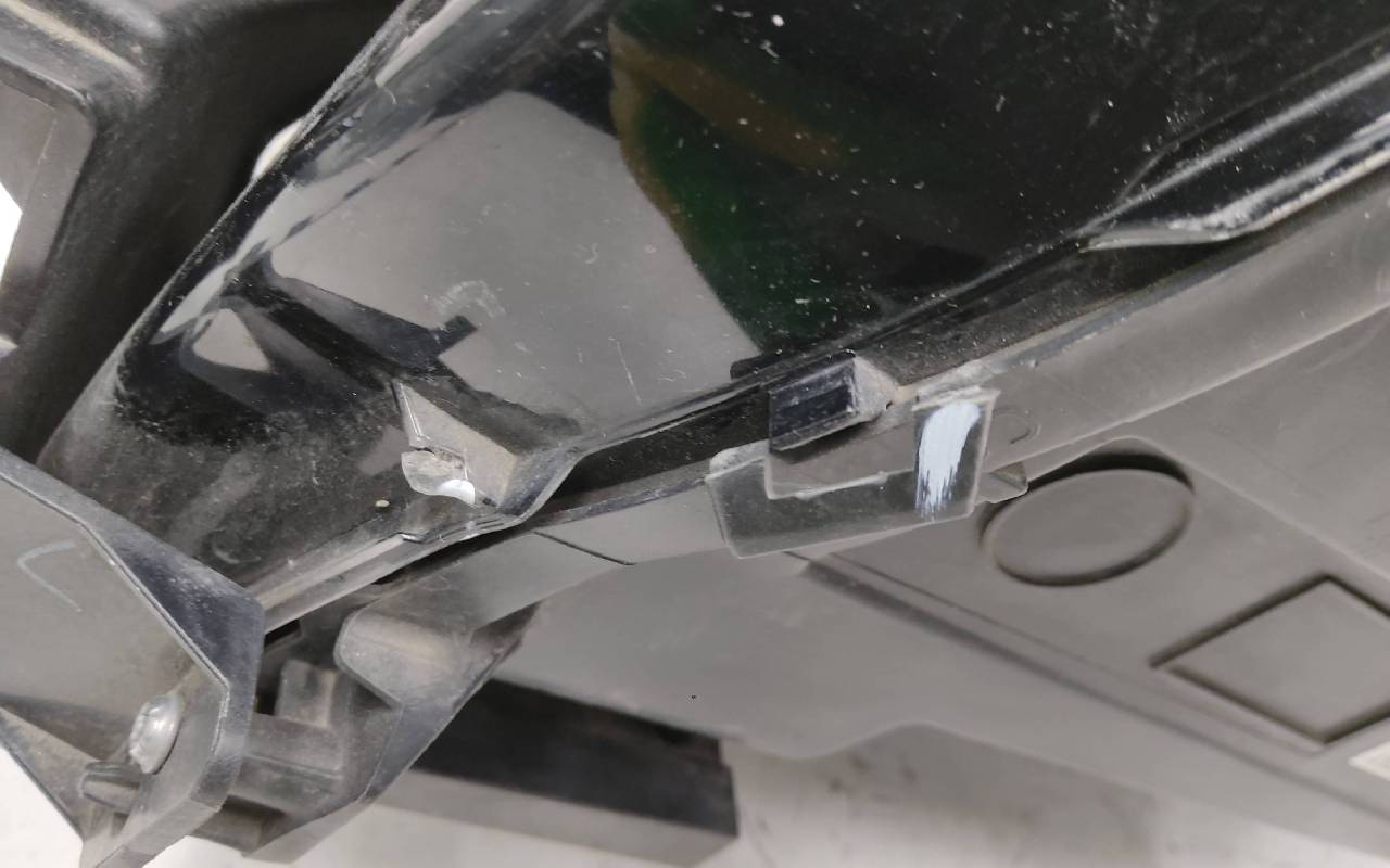 Состояние детали хорошее. Царапинки на стекле, дефект скобки корпуса к стеклу. Крепления на месте, небольшая трешина пластика одного верхнего - на фото. Сколы на съёмном кронштейне. Может потребоваться незначительный ремонт