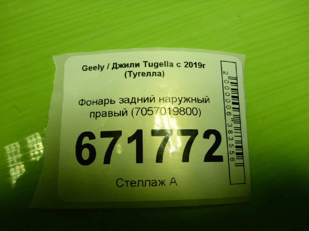 Деталь: Geely Tugella - Фонарь задний наружный правый (7057019800)