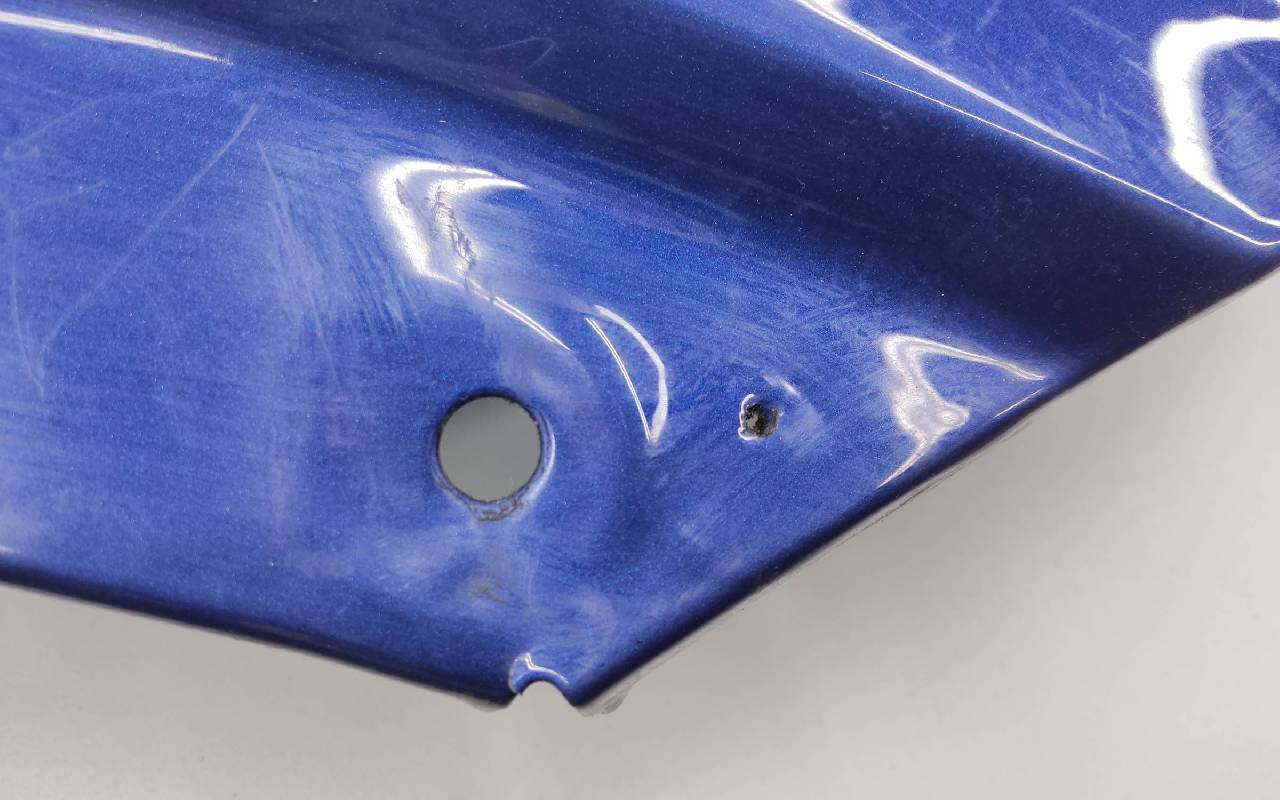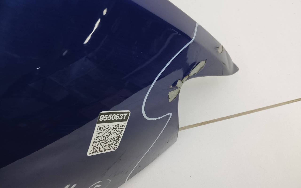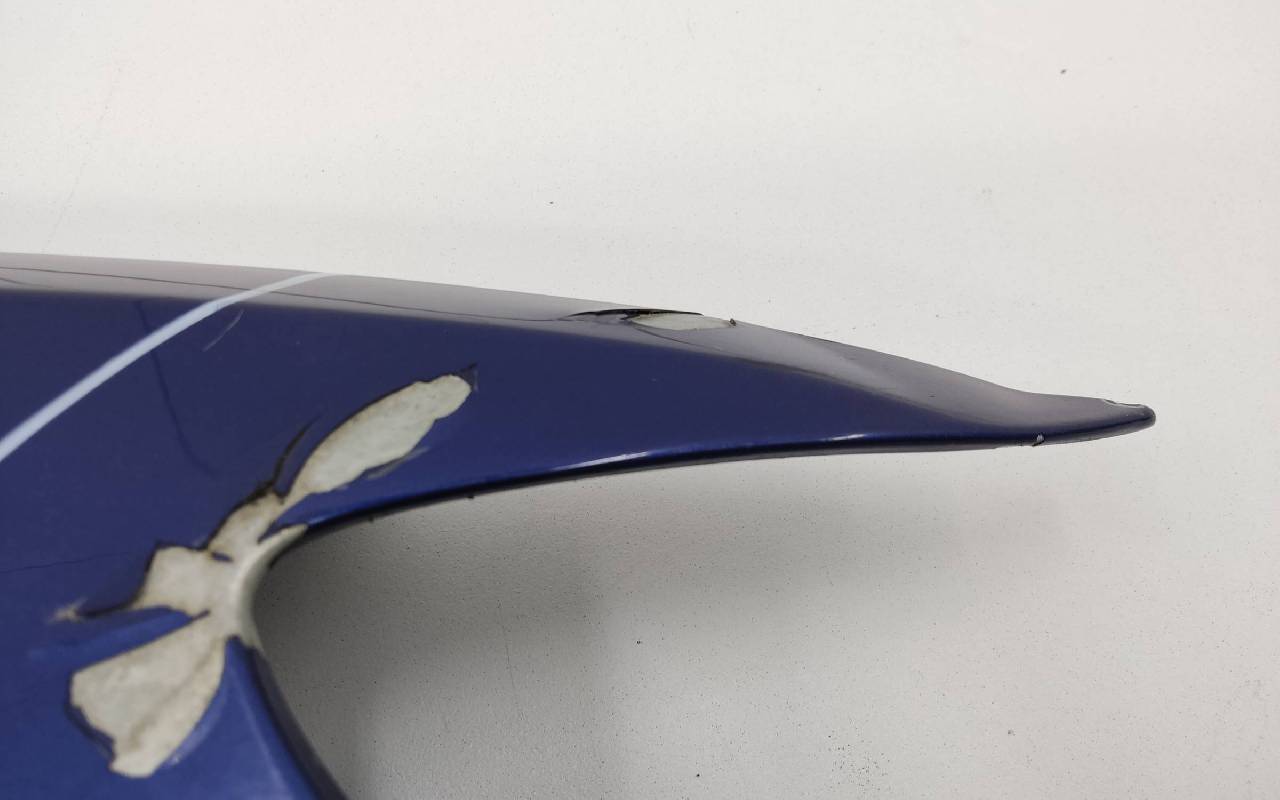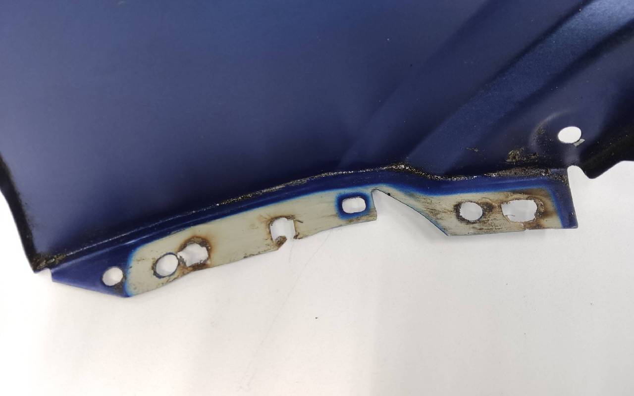 Состояние детали хорошее. Синего цвета, скол ЛКП. Вмятина в передней части, дефект металла по кронштейну. Потребуется незначительный ремонт