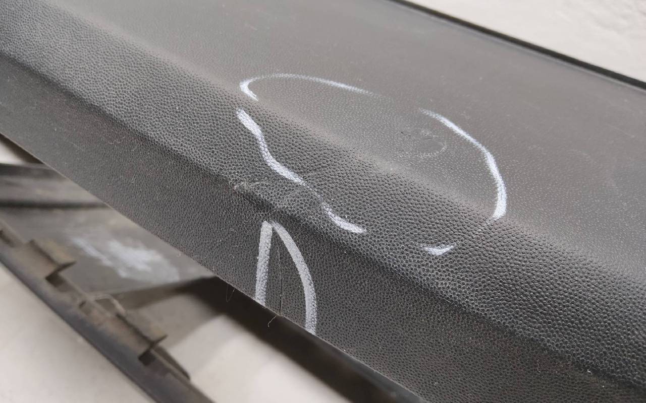 Состояние детали удовлетворительное. Текстура под парктроники. Трещинка, царапины. Крепления целые. Потребуется ремонт