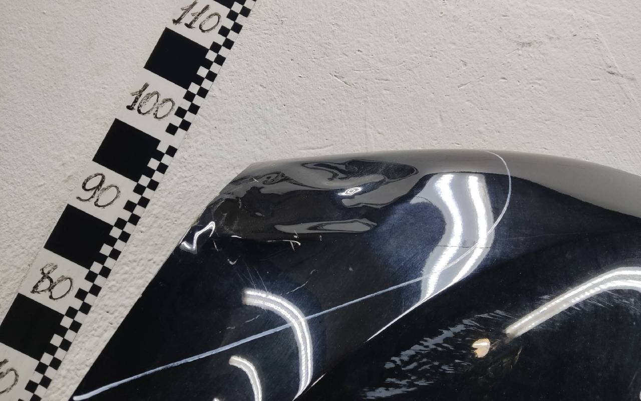 Состояние детали удовлетворительное. Чёрного цвета в плёнке, скол ЛКП. Вмятина на внешней и внутренней поверхности. Потребуется ремонт