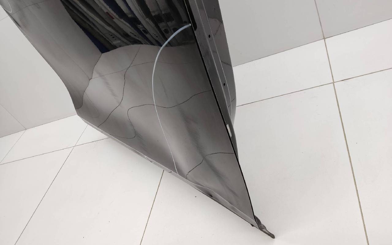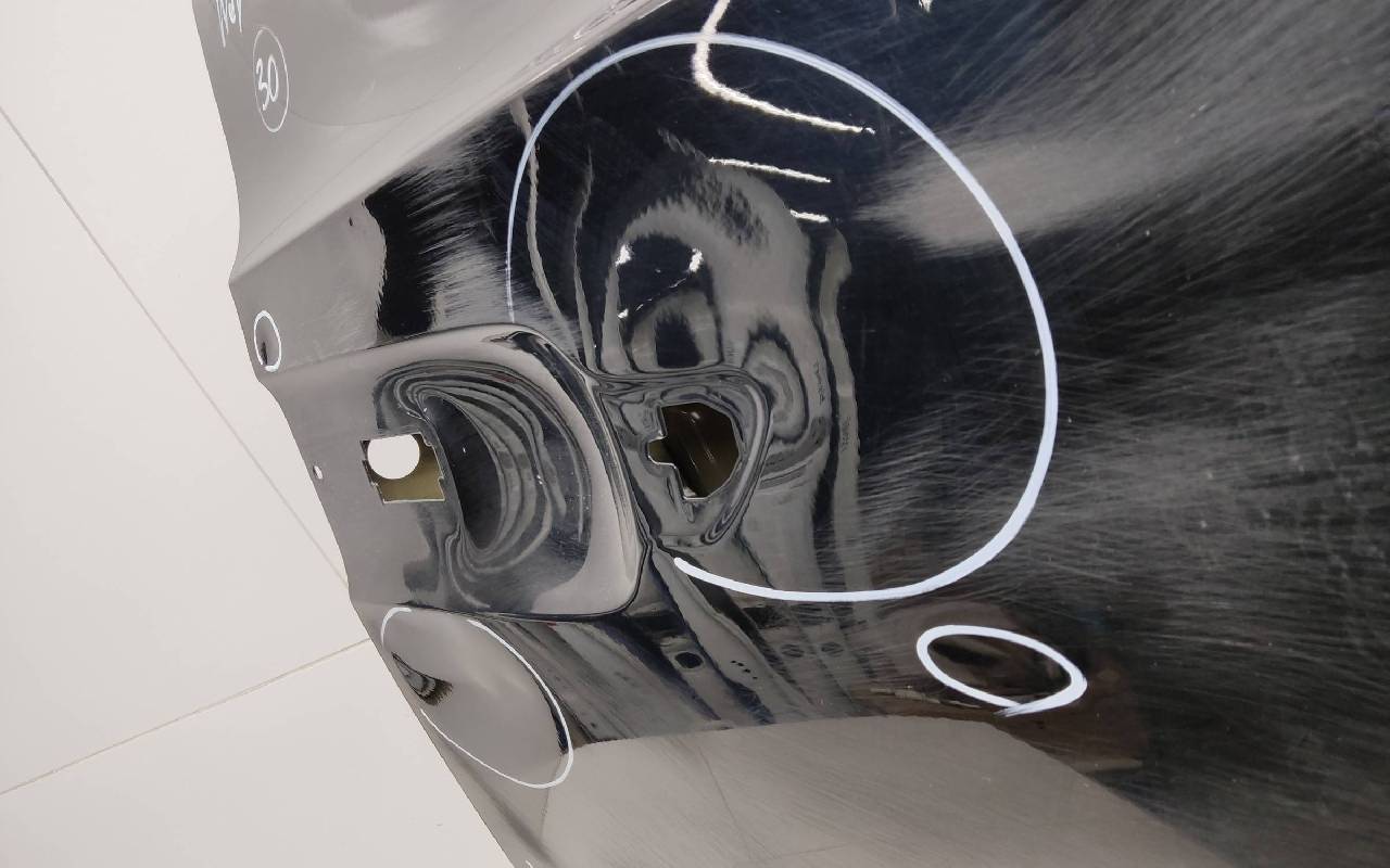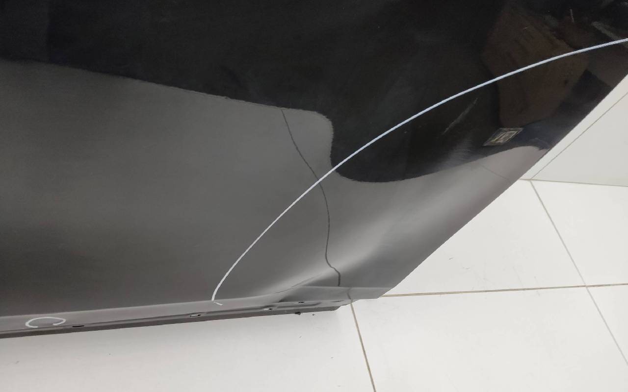 Состояние детали удовлетворительное. Чёрного цвета, скол ЛКП. Вмятины. Потребуется ремонт