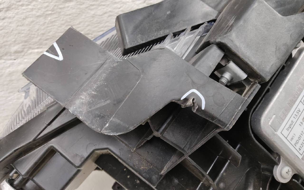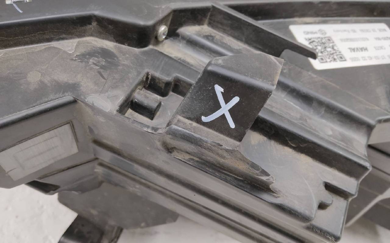 Состояние детали хорошее. Стекло в плёнке. Отсутствует одно крепление, небольшой дефект пластика на фото. Потребуется незначительный ремонт