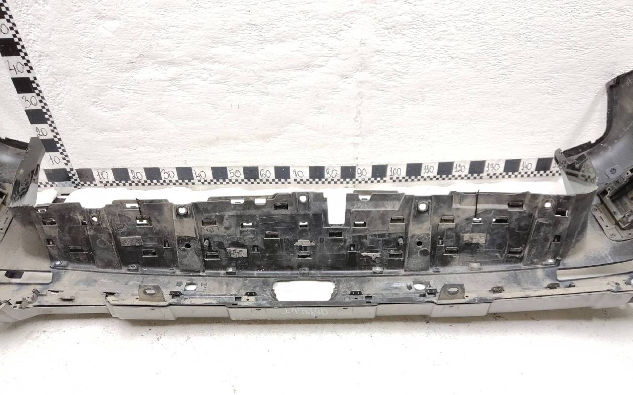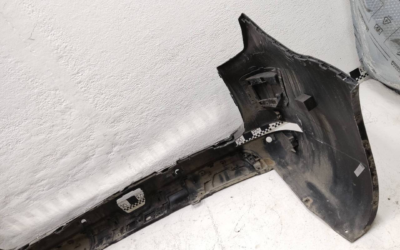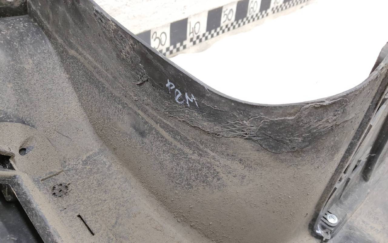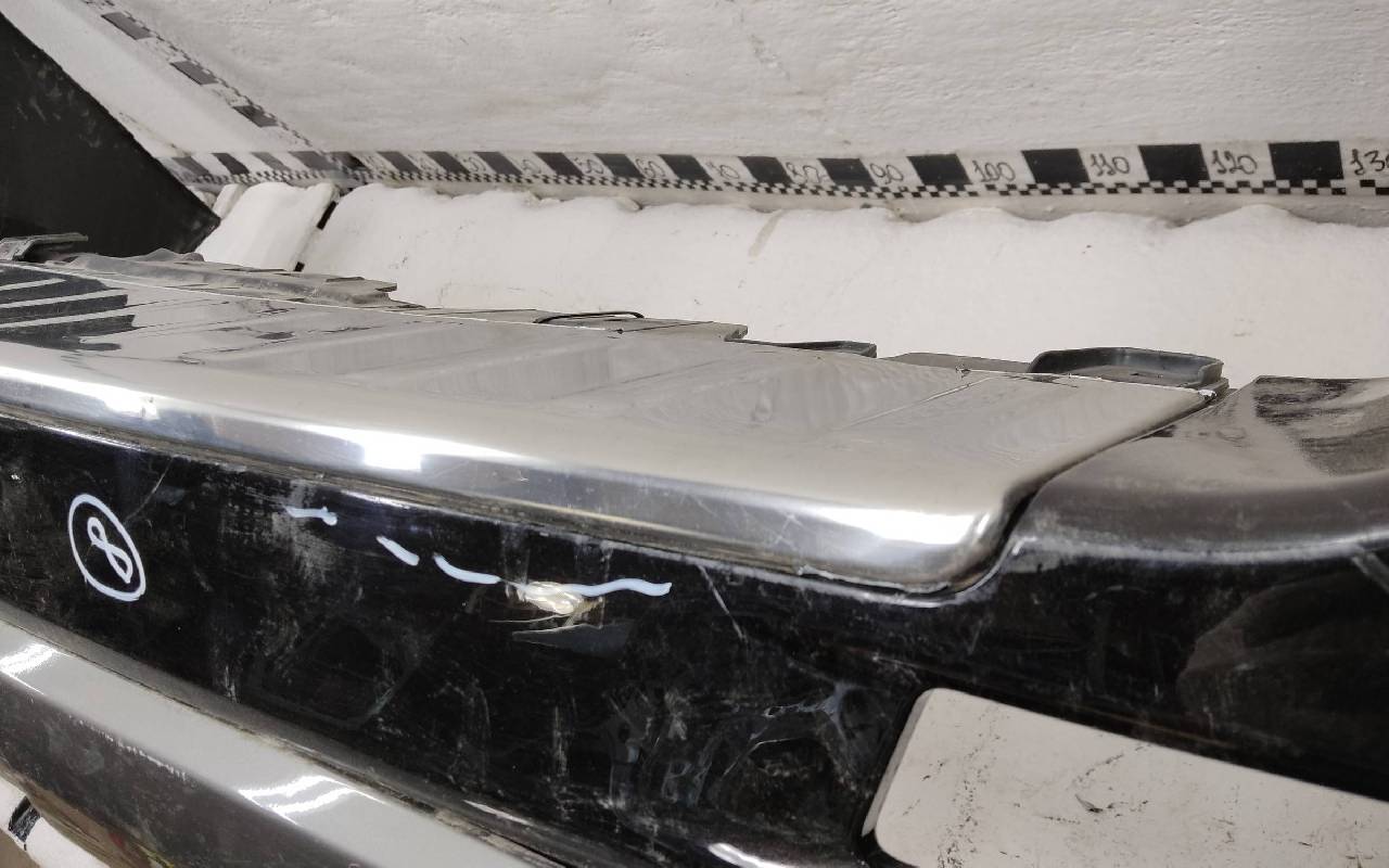 Состояние детали хорошее. Чёрного цвета под парктроники. Ранее производился ремонт. Небольшие вмятины на полке бампера и накладке, царапины. Отсутствуют три крепления под правую ПТФ и одно на юбке. Потребуется незначительный ремонт