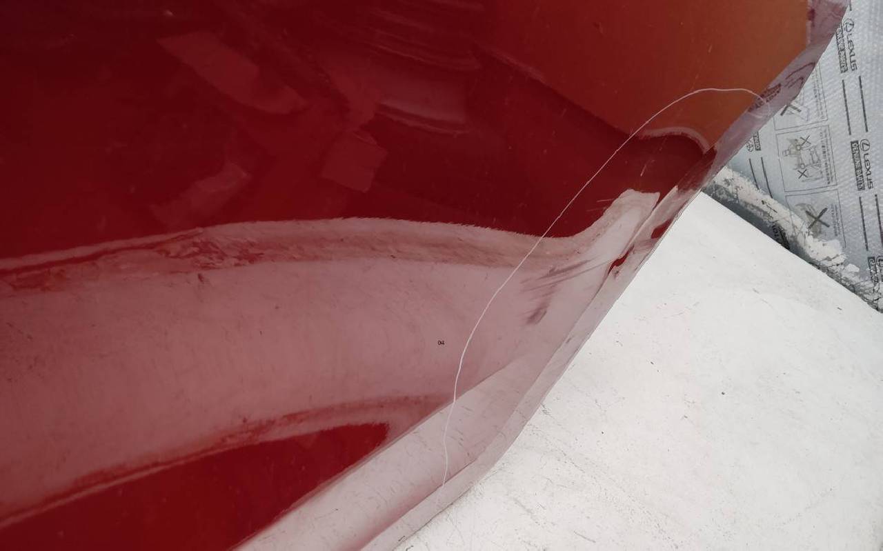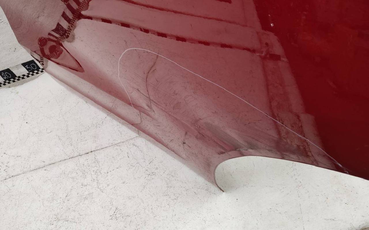 Состояние детали хорошее. Красного цвета, скол ЛКП. Вмятина. Потребуется ремонт